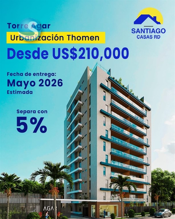 ? Torre Agar | ¡Elegancia y comodidad en Santiago! ?? Apts. de 115?m² y 123?m² ??? Sala | ??? Comedor | ?? Cocina con isla ???2 habitaciones . (principal con baño y vestidor) ?? Área de lavado + hab. de servicio ?? 2 parqueos | ?? 2 ascensores | ?? Seguridad 24/7 ??? Gimnasio climatizado | ?? Juegos infantiles | ?? Rooftop con vista increíble ?? Entrega: 2026 ?? Desde US$ 210,000 ?? ¡Separa con solo el 5%! ?? Contáctame para info y disponibilidad Contáctanos 829-420-5087 Fradery Ruiz asesora inmobiliaria de Santiago Casas ?? rd