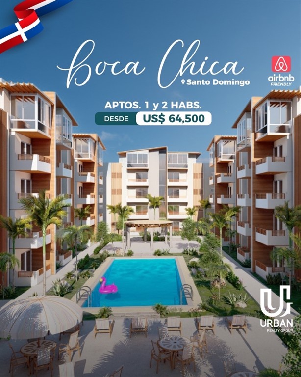 Boca Chica – Santo Domingo Apartamentos de 1 y 2 Habitaciones desde US$64,500 Características: Sala Comedor Cocina Balcón Ascensor Patio en primer nivel Terraza destechada AMENIDADES Casa Club Piscina Gimnasio Cancha de fútbol Cancha de pádel Club de playa Mini golf Airbnb friendly Gestión Hotelera y Fiduciaria APAP Forma de pago: RESERVA US$ 1,000 10% FIRMA DE CONTRATO 30% DURANTE LA CONSTRUCCIÓN 60% CONTRA ENTREGA Entregas: Diciembre 2026 Diciembre 2027 Junio 2028 Diciembre 2028 Contáctame: María Almonte Cel: 809-703-1742 Correo: Marí[email protected] “Somos expertos en inversiones seguras” #BocaChica #Inversion #Apartamentos #RealEstate #Condos #Townhouses #SantoDomingoEste #SomosUrbanGroup #TeamUrban #UrbanGroup #Playa