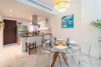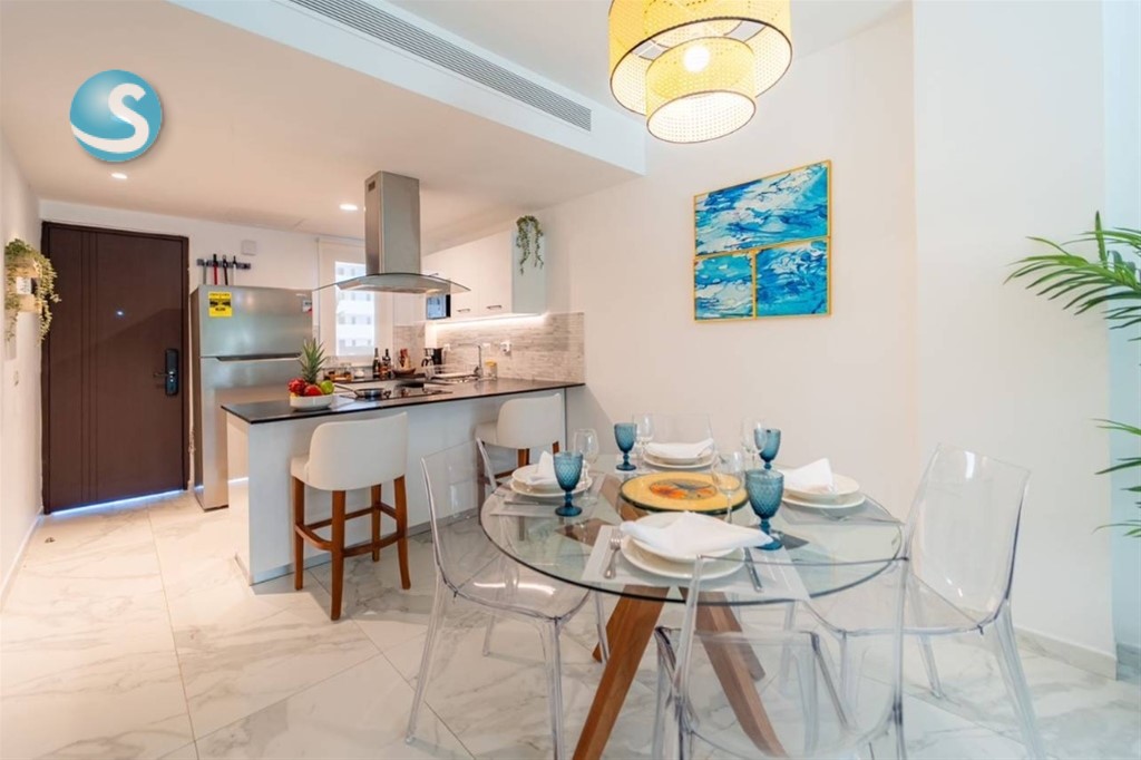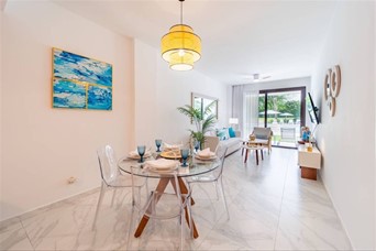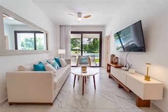 APARTAMENTO EN VENTA AMUEBLADO EN PUNTA CANA Características 154 mts 1 Nivel 2 habitaciones (principal con baño ) 2 baños completos Sala Comedor Desayunador Cocina Balcón 1 parqueo Amenidades Ascensor Planta full Gimnasio Piscina Cisterna Pozo Con confotours Precio de venta US$390,000 Información Ariana Estaba 829-929-4899