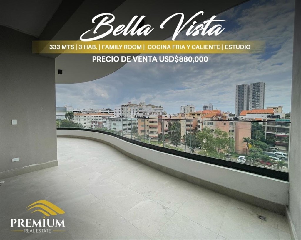 Un proyecto de lujo ubicado en el exclusivo sector de Bella Vista. Ofrece 3 tipos de apartamentos de 3 Habitaciones, cada una con baño y Walk-in Closet, amplia cocina modular fría, cocina caliente, sala, estar familiar, comedor, baño de visitas, amplio balcón, cuarto de servicio y área de lavado. Tipo A: Piso 3, 333 metros, US$880,000 • Amplio Lobby Principal • Salón Multiuso con bar • Salón para actividades con kitchenette y bar • Piscina para adultos • Piscina para niños • Gimnasio Equipado • Área de niños • Área de BBQ con kitchenette y bar • Baños para damas y caballeros con sauna • Gas Común • 2 Ascensores de lujo • 1 Ascensor de servicio ......................................................... • 3 Hab. Con baño y Walk-in Closet • Vestíbulo de Entrada • Medio baño para visitas • Estar • Sala • Comedor • Estudio • Family Room • Balcón - Terraza • Cocina fría y Caliente • Closet de Ropa Blanca • Área de Lavado • Cuarto de servicio con su baño • Locker • 4 Parqueos ......................................... LISTO PARA ENTREGA Haydée López Agente Inmobiliario Premium Real Estate Cel. 829-875-9881 Instagram: @haydeelopezpremium