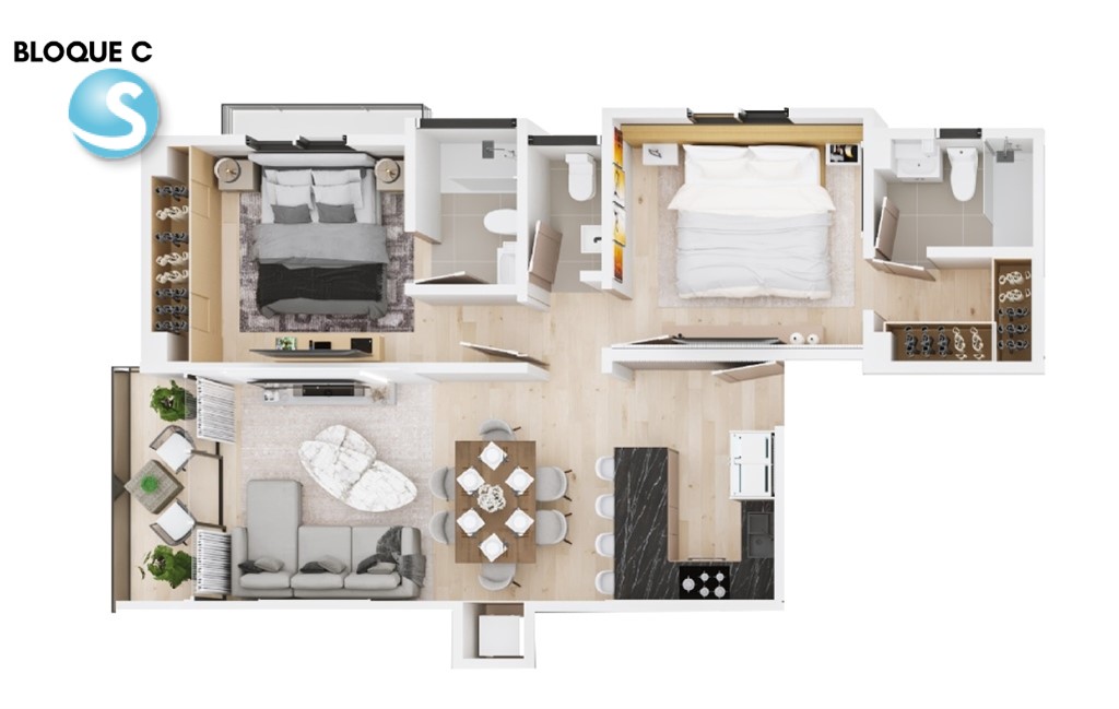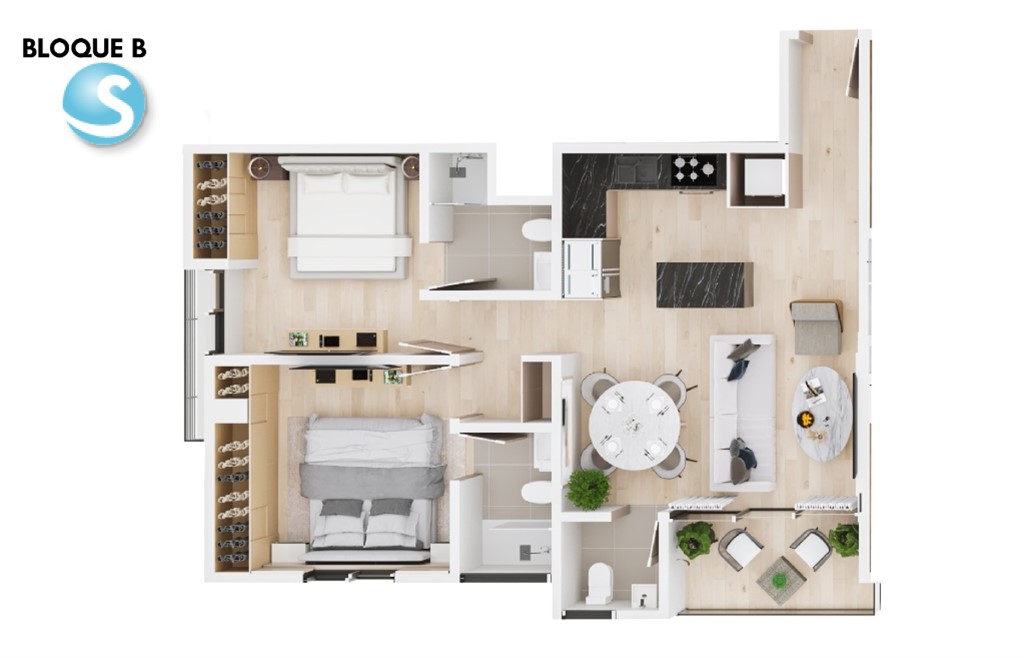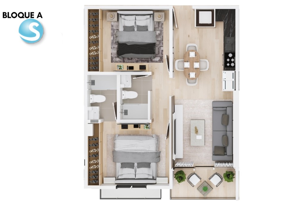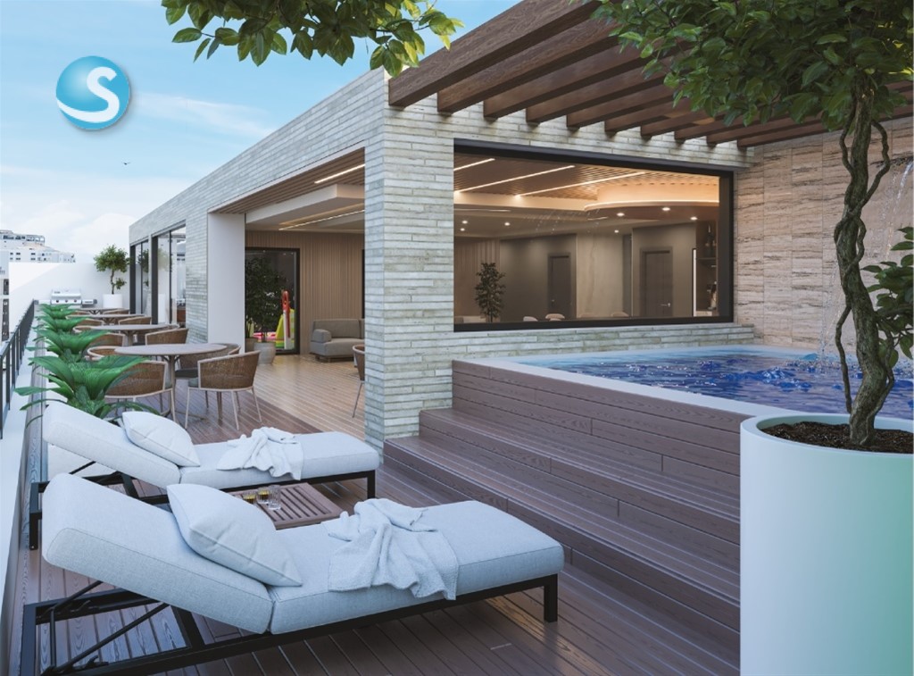 APTOS DE DOS (2 ) HABITACIONES CON BALCON UNO Y DOS PARQUEOS DESDE 70.25 MT HASTA 84.55 MTS DESDE US$188,270 Elegante lobby con fina terminación • Jacuzzi en el rooftop • Terraza destechada con BBQ • Terraza techada con bar • Gimnasio totalmente equipado • Playground interior para niños • Ambientes de jardineria Controles de accesos y monitoreo con cámaras de vigilancia • Ascensor de última generación • Intercom video portero • Preinstalación de cargadores para vehículos eléctricos • Lockers y áreas para paneles solares • Sistema contra incendio • Doble sistema de bombeo de agua • Pozo tubular • Planta eléctrica ful • Gas común Reserva ? US$ 5,000 (no reembolsables) Pago de 10% ? A la firma del contrato Pago de 40% ? En cuotas hasta Diciembre 2028 Pago de 50% ? Contra entrega