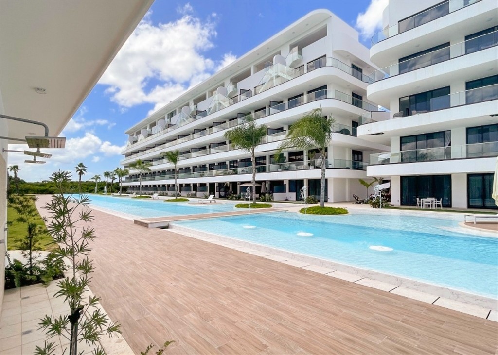 Exclusivo apartamento de 2 habitaciones en Cana Rock Star. Cana Rock es una comunidad residencial ubicada en Punta Cana, donde se fusiona el lujo con un diseño inteligente, ofreciendo apartamentos con vistas a la piscina y al campo de golf del Hard Rock Golf Club. El complejo ofrece una variedad de servicios y comodidades que están diseñados para mejorar la experiencia de los residentes y visitantes. Restaurantes y bares dentro del complejo de Cana Bay, acceso al gimnasio de Cana Rock Condos. Descuentos en Hard Rock Golf Club. Acceso al Club de Playa (a menos de 5 minutos en vehículo), dos piscinas tipo laguna, gimnasio, club de tenis, parques infantiles, vestíbulo con mini mercado, son algunas de las amenidades que ofrece esta exclusiva propiedad. Incluye: Estufa eléctrica, nevera, extractor, lavadora y secadora, además de estar totalmente climatizado y amueblado.