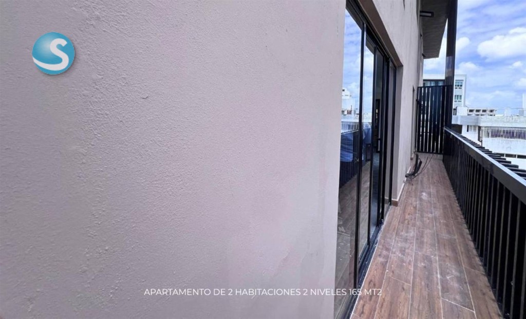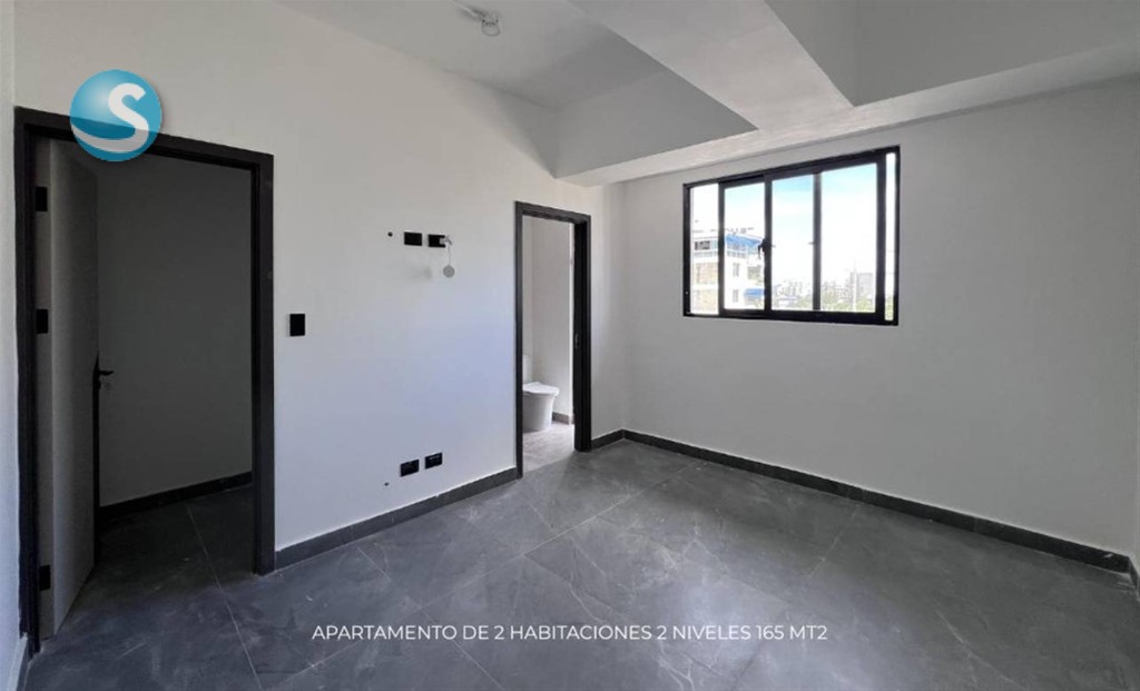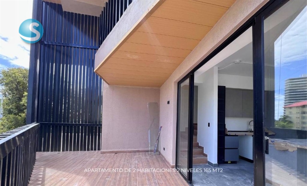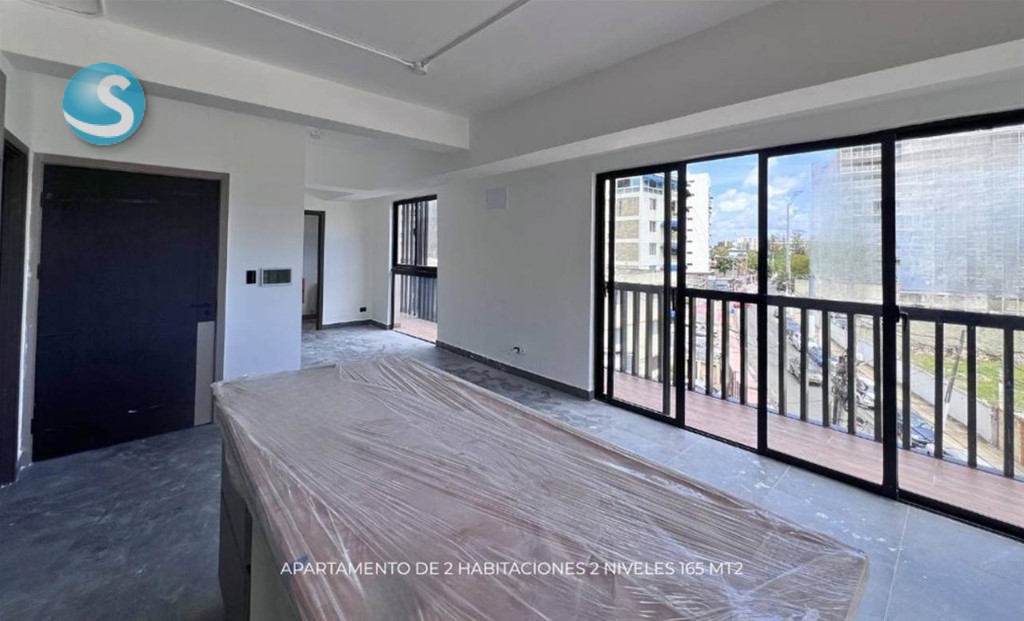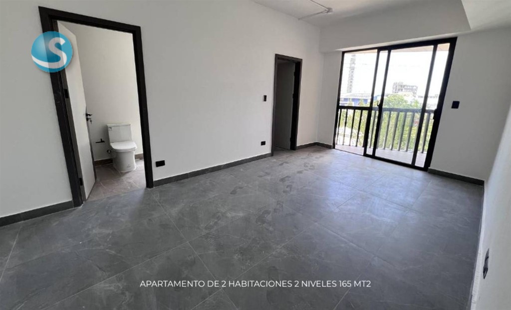 Apartamento de 2 niveles tipo loft de 2 habitaciónes, en el centro de la ciudad con una vista de 180 grados al mar a pocas esquinas de las Ave. 27 de Febrero. CARACTERÍSTICAS: - 2 habitación c/u con su baño y WC - 2 niveles - Walt in closet - 2 baño completo - Baño común - Sala - Comedor - Cocina Privada minimalista - Área de lavado - 2 Balcónes Panoramicos - Vista Panoramica - Bien Iluminado - Control Inteligente CARACTERISTICAS DEL PROYECTO: - Coffe shop - Piscina - Sauna - Spa - Área de BBQ - GYM - Salón multiuso - Lobby Moderno Climatizado - Vigilancia IP en los parqueos - Sistema de intercomunicación IP entre los apartamentos #3064