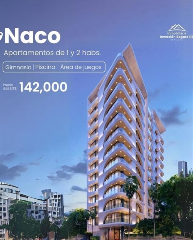 Elegante torre ubicada en una de las zonas más exclusivas del Distrito Nacional. Apartamentos de 1 y 2 habitaciones desde 85 m2 con fecha de entrega marzo 2027. Desde US$142,000 Características generales: • Lobby amueblado • Coworking space • Área de juegos para niños • Salón multiuso • Terraza • Gimnasio • Piscina • 2 ascensores • Planta full • Sistema de circuito cerrado • Pre-instalaciones para cargador electrónico de vehículos Reserva con US$5,000 Invierte con confianza, invierte con inversión segura.