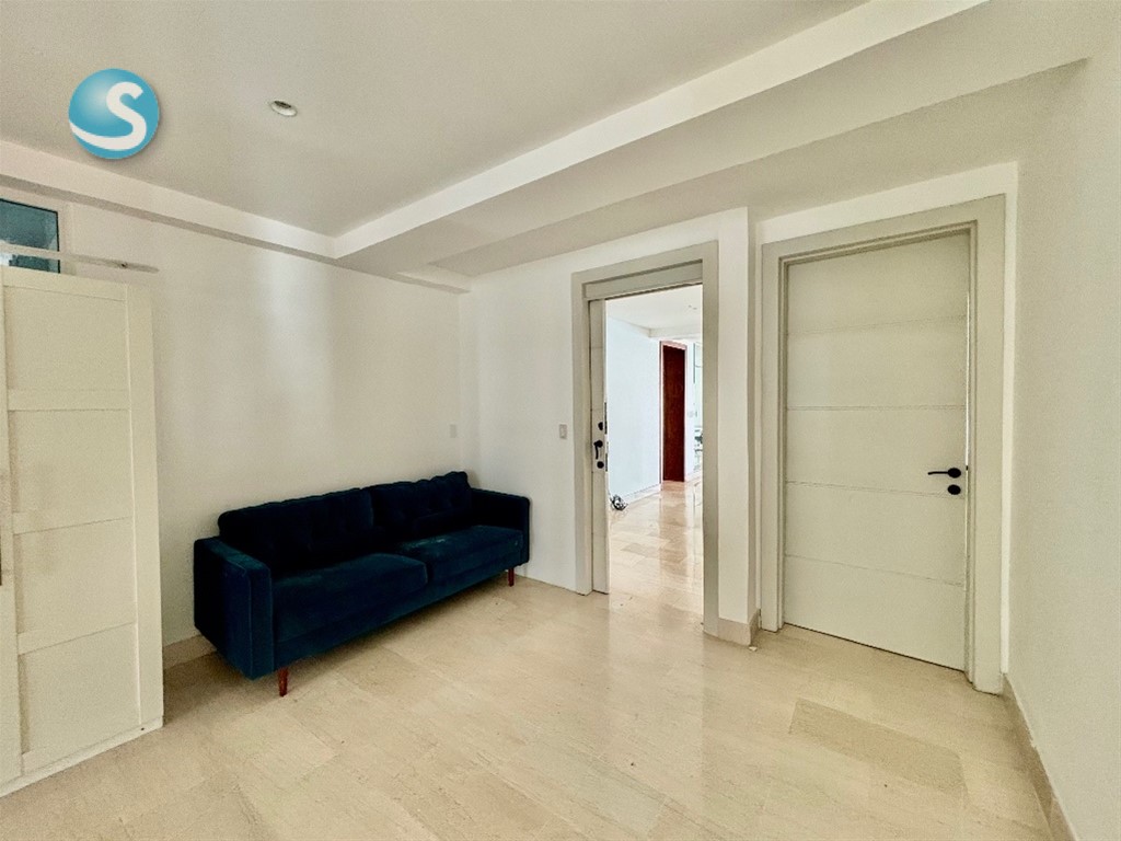 Hermoso y espacioso apartamento en Torre Familiar del Ensanche Naco! Torre de pocos vecinos y un apartamento por nivel 332 mts netos 3 habitaciones con baño y walking closet Baño de visita Amplio estudio cerrado Family Recibidor Sala y comedor Balcon tipo terraza y en L (super espacioso con la posibilidad de crear dos espacios adicionales) Cocina cerrada Area de lavado amplia con la posibilidad de hacer una cocina caliente 2 parqueos paralelos y techados Amenidades de la torre: Lobby climatizado 2 ascensores Salon multiusos Estar de choferes