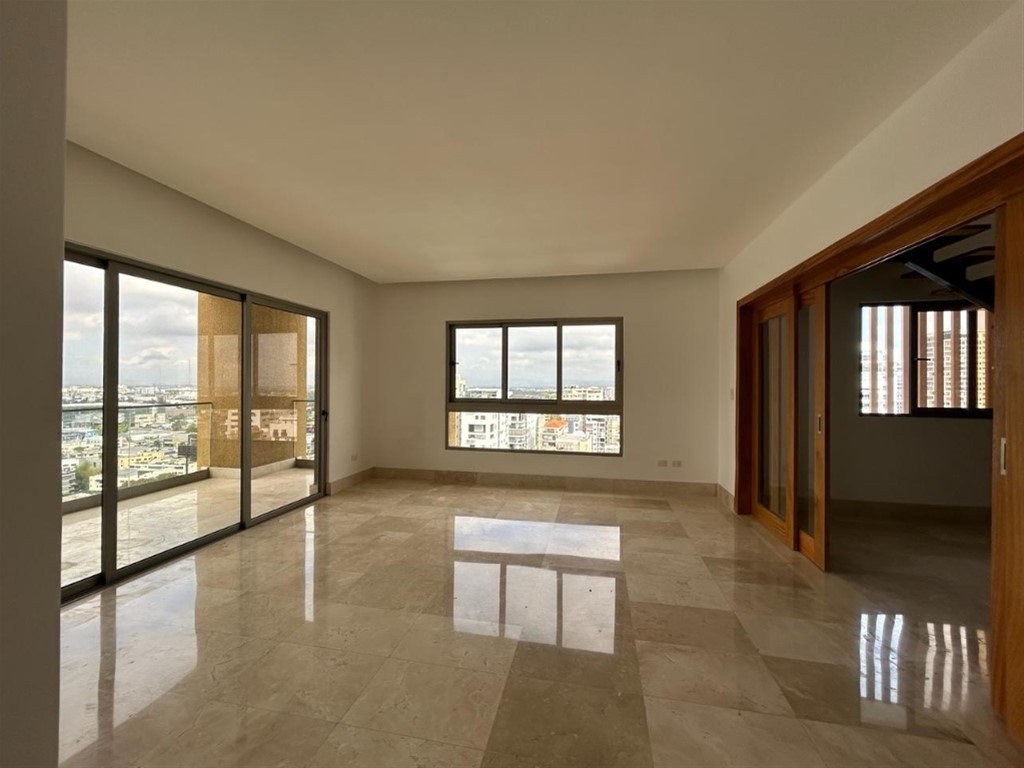 CODIGO: 2975 Listo para entrega Penthouse de dos niveles de 344 metros en el Ensanche Paraíso, reconocido por su ambiente acogedor y su fácil acceso a una amplia gama de servicios y opciones de entretenimiento. Cerca a la av. Winston Churchill, supermercado Bravo, Blue Mall entre otros. Cuenta con 4 amplias habitaciones, 3 en el primer nivel y 1 en el segundo nivel. Al entrar al apartamento, serás recibido por una sala luminosa decorada con tonos cálidos y contemporáneos, generando un ambiente acogedor y sereno. Los amplios ventanales permiten que la luz natural inunde el espacio, brindando vistas panorámicas del sector. Cuenta con cocina fria y caliente. En segundo nivel tenemos un amplio estudio, terraza destechada con area para barbeque y jacuzzi. Características generales del proyecto: Lobby amueblado y climatizado. · Área Social · Área de Juegos Infantiles · Pool Deck con Hot Tub · Sports Bar · Salón de Actividades · BBQ Spot · Lounge Techado · Gimnasio Equipado Indoors/Outdoors ¡Contáctanos ahora para programar una visita y asegura tu nuevo hogar de lujo hoy mismo!