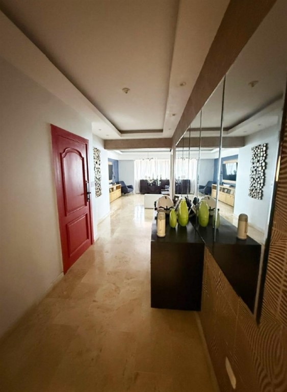 4to piso 200 mt Pisos en mármol en la sala y el estudio. No en las habitaciones 3 habitaciones con sus baños Baño de servicio Estudio 2 wlak-in closets Cuarto de servicio Área lavado Balcón Ascensor Planta full 2 parqueos techados. (Grandes) Terraza común en techo