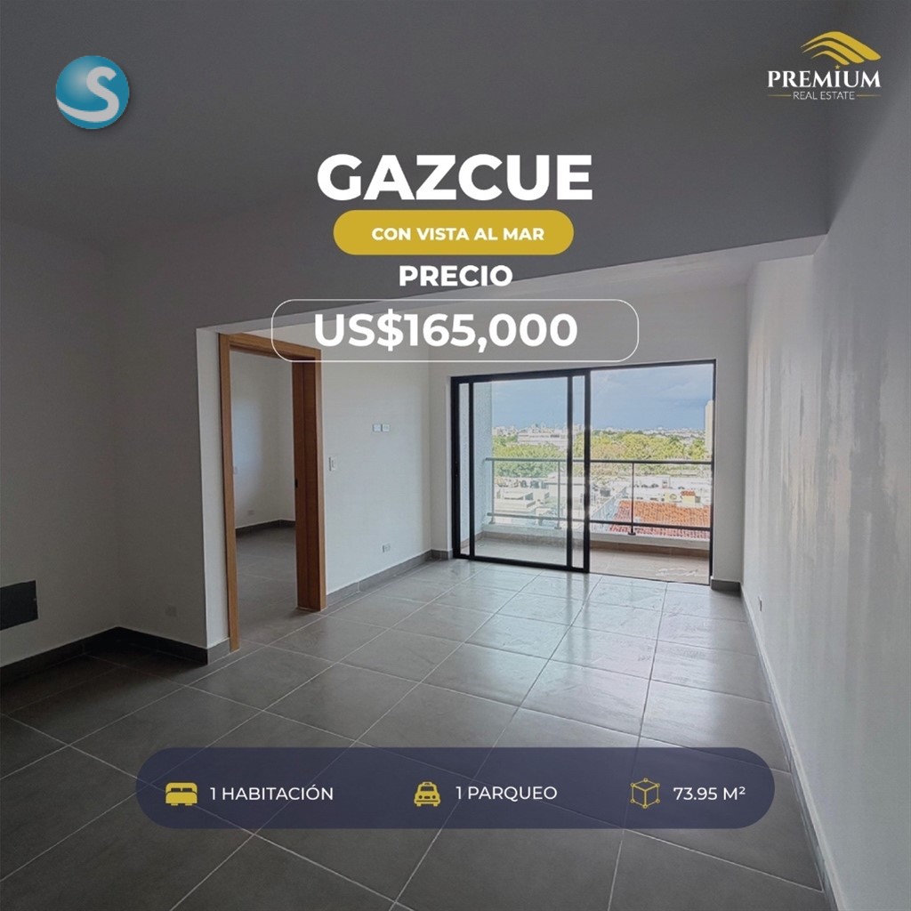 Gazcue A estrenar con Vista al Mar Precio de Venta US$165,000 Piso 8 Apartamento de 73.95m2 Total / 60m2 construcción 1 habitación 1 baño 1 parqueo Balcón Sala-comedor Cocina integrada Área de lavado AMENIDADES ÁREAS COMUNES Terraza techada/destechada Cancha de padel Patio exterior Gazebo Lobby Área de juegos para niños Piscina Pasarela techada Mini fútbol Salida parque central Garita de acceso BBQ Gym Sauna