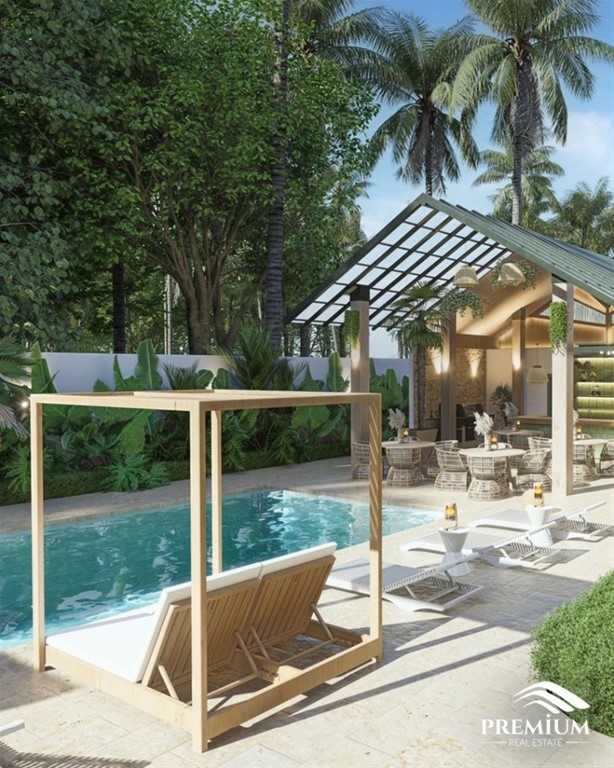 Las Terrenas Ubicada a 400 metros y a 2 minutos en auto de la playa más exclusiva de Las Terrenas, playa Las Ballenas, una espaciosa y ancha playa de arena blanca justo en el corazón del pequeño y colorido pueblo de Las Terrenas. • Villas y apartamentos • 1,2 y 3 habitaciones • 1 y 2 parqueos • Terraza • Patio - Amenidades * Sistema de cámaras de seguridad CCTV exteriores * Amplias áreas de jardín * Terraza con BBQ común * Piscina común * Planta eléctrica de emergencia * Gas común * Cisterna de agua * Gimnasio * Tenis de mesa * Apartamentos en el 3er nivel con jacuzzi y terraza privada * 2 apartamentos en el primer nivel con patio y jacuzzi privados. * Villas con piscina privada -Terminaciones Pisos interiores en porcelanato importado. * Pisos de baños en porcelanato. * Pañete en paredes en cemento * Techos en Yeso * Equipamiento de baños compuesto por inodoros, lavamanos y mezcladora de ducha. * Puertas principales en madera preciosas, interiores enchapada en melamina. * Puertas de closets (no incluye, tramos, racks, colgaderos ni gavetas) * Puertas correderas y ventanas en aluminio y vidrio * Salidas eléctricas para luminarias, interruptores y tomacorriente (no incluye bombillos, ni ningún tipo de iluminación) * Aire acondicionado en las habitaciones * Calentador de agua. * Gabinetes de cocina con topes finamente diseñados por interiorista * Fregadero de cocina * Walking closet habitaciones principales * Villas con cuarto útil y área de lavado * Villas con marquesina doble techada - Plan de Pago • Reserva USD$5,000.00 • Firma del contrato 20% • Movimiento de tierra y excavación 10% • Construcción de cimientos 10% • Construcción de techo 10% Instalación de pisos 10% • Entrega de apartamentos 40% • Total 100% *Plan de pago Planes de pago disponibles por mensualidades