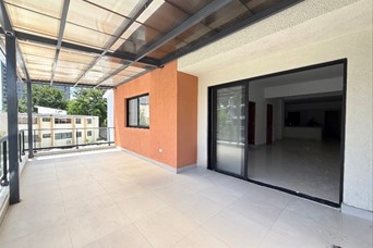 APARTAMENTO CON TERRAZA EN LOS CACICAZGOS - 155 metros neto + 26 metros de terraza - 3 habitaciones con w/c - 3.5 baños - Cocina con desayunador - 2 parqueos + locker Amenidades de la torre: - Piscina - Gimnasio - Sauna - Salón Multiuso - Área infantil - Lobby Amueblado - Ascensores - Planta full