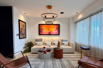 Agente Mayka Estrella / Acosta Contacto: 849-856-5217 Sector: Los Casicasgos Construcción: 555 Metros² Venta: US$ 750,000 Habitaciones tres Parqueos 4 Parqueos Exclusivos apartamentos de 300 m², armoniosamente distribuidos , con espectacular vista, un apartamento por nivel, constan de 3 habitaciones, 3.5 baños, estar familiar, cocina fría y caliente, tres parqueos, locker. Terminación de lujo, ebanistería en roble, pisos en mármol ,topes de cocina en granito natural, techos modernos , exclusivas griferías de baños. Hemos conceptualizado áreas comunes con lobby decorado y climatizado, estar para choferes, área de reuniones, área social en azotea con jaccuzi, Gimnasio equipado, dos ascensores con llaves y sistema wifi, sistema contra incendio, cámaras de seguridad.