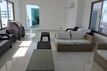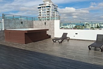 Cacicazgos Dos Torres Gemelas de 12 apartamentos cada una (dos por nivel) apartamentos de 200 mts , armoniosamente distribuidos, con expectacular vista al mar, dos apartamento por nivel, constan de 3 habitaciones , 3.5 baños , estudio, dos parqueos. Terminación de primera, ebanistería en roble, pisos en porcelanato, topes de cocina en granito natural, techos modernos. Hemos conceptualizado amenidades como lobby decorado y climatizado, estar para choferes, Gimnasio,, área social en azotea con jaccuzi, dos ascensores c/u, sistema contra incendio, cámaras de seguridad.