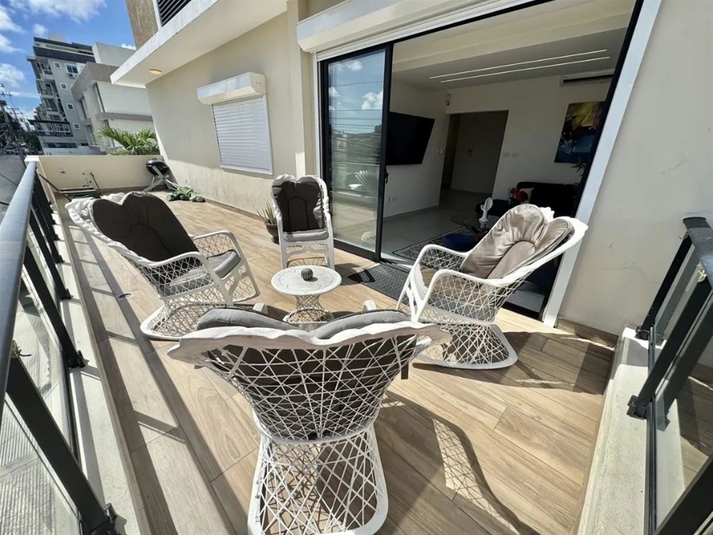 Apartamento en Venta LOS PRADOS USD 270,000.00 Mantenimiento: RD$14,700.00 CARACTERÍSTICAS DEL APARTAMENTO: • 185.06 m2 (119.81 m2 netos + 36.70 m2 de terraza + 4 m2 de locker + 24.55 m2 de parqueos ) • Piso 2 • 3 habitaciones • 1 vestidor + 2 closets • 2.5 baños • 2 parqueos techados paralelos • Terraza con pre-instalación para Jacuzzi • Sala • Comedor • Cocina con desayunador • Habitación de servicio • Área de lavado • Closet de ropa blanca • Calentador • Shutters • Locker • Techos en sheetrock y luces led • Cerradura digital (SmartLock) • Sistema de alarma • Cámaras de vigilancia • Hierros en los laterales CARACTERÍSTICAS DEL EDIFICIO: • Año de construcción: 2022 • Lobby • Intercom • Ascensor • Área social con BBQ • Salón multiusos • Cisterna • Pozo • Gas común con medidor • Planta eléctrica full • Portón eléctrico • Seguridad • Cámaras de vigilancia WM BIENVENIDA RUBEN 829 719 5197