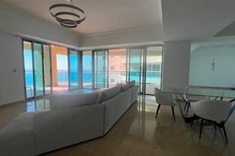 Apartamento en alquiler con vista al mar – 362.29 m² Amplio y elegante apartamento con vista al mar, diseñado para quienes valoran espacios generosos, privacidad y confort. * 362.29 m² de construcción netos * 3 habitaciones * 3.5 baños * Sala y comedor de gran tamaño * Cocina amplia y funcional * Área de lavado * Cuarto de servicio * 2 parqueos techados Un apartamento que combina amplitud, distribución inteligente y una vista privilegiada, ideal para residencia familiar o ejecutiva. * Ubicación estratégica frente al mar * Vista abierta desde áreas sociales