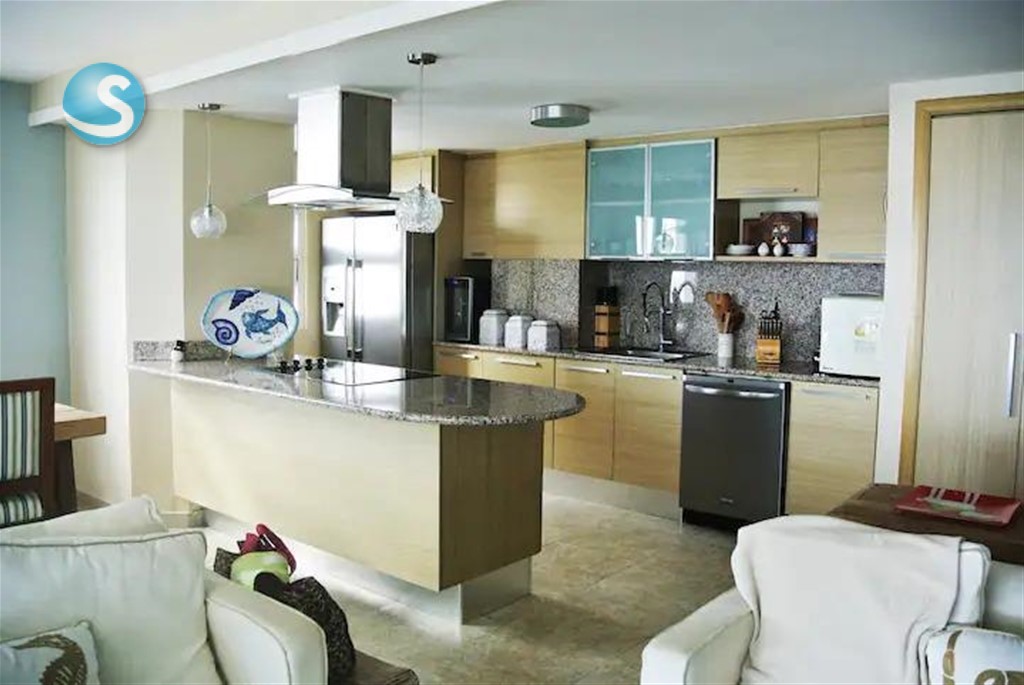 Marbella, Juan Dolio Hermoso apartamento en piso alto. 166 Metros cuadrados 3 habitaciones Con Ventanales 3 baños Comedor con Ventana al exterior Playa 2 amplio balcones Cocina abierta 2 parqueos Piscina Gimnasio Area infantil BBQ Lounge bar Terraza destechada. Restaurante Precio de Venta: US$470,000
