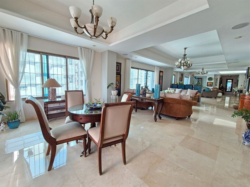 Apartamento con impresionantes vistas en Piantini bien cerca de la Abraham Lincoln con múltiples vías de acceso. Único apartamento en este nivel, proporcionando ventilación 360 por todos los lados. Múltiples ambientes de sala, comedor separado, dos cocinas y abundantes adicionales como shutters en todas las ventanas, aires en todas las habitaciones y ambientes sociales, bocinas en los techos de la sala, cámaras de seguridad, cables de red, techos decorados con tres tonos de iluminación a gusto, entre otros. Precio: USD$ 900 Mantenimiento: RD$ 22,500