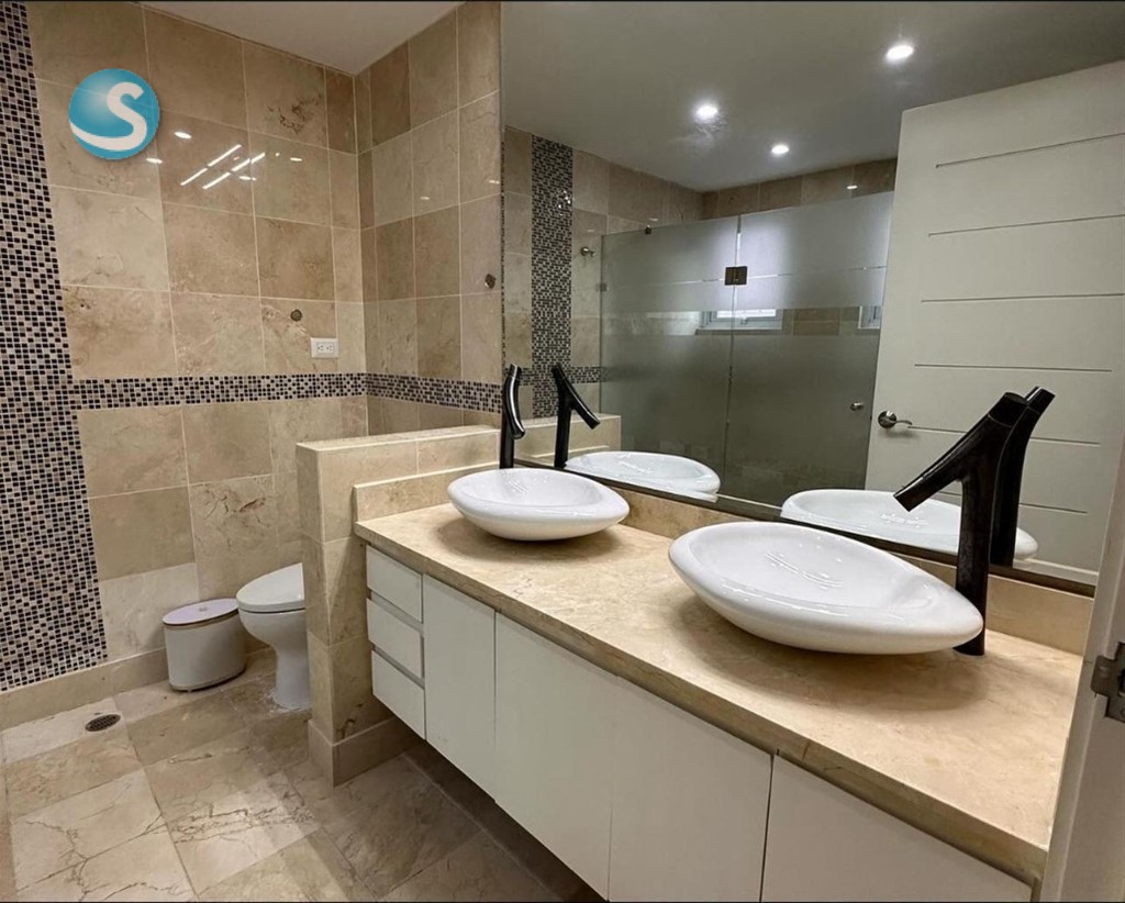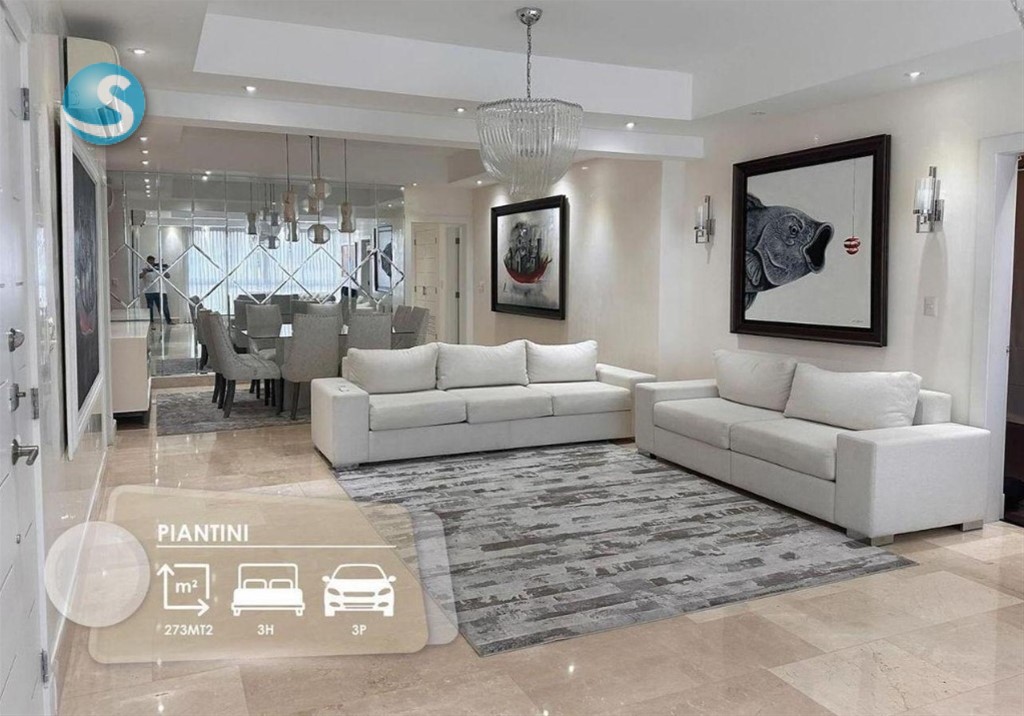 Piantini Piso alto 274 mts Solo 9 familias 1 apartamento por piso 3 habitaciones 3 baños completos Baño de visitas Closets forrados en cedro Sala Comedor Estudio Pequeño balcón Amplia Cocina Area de lavado Cuarto de servicio con baño Pisos en marmol 2 ascensores que llegan al apto directamente, con acceso privado de llave 2 plantas eléctricas grandes Conserje 24/7 sistema de cámaras 3 parqueos paralelos 1 locker Área social : Piscina al aire libre Área de niños con grama artificial salón con juegos de adultos que incluye una mesa de billar Salon multiusos con aire Gimnasio equipado área de BBQ 2 baños completos Cuarto de choferes Precio de venta: 570,000 dólares (Negociables) Mantenimiento mensual:25,515 pesos Año de construcción: 2013