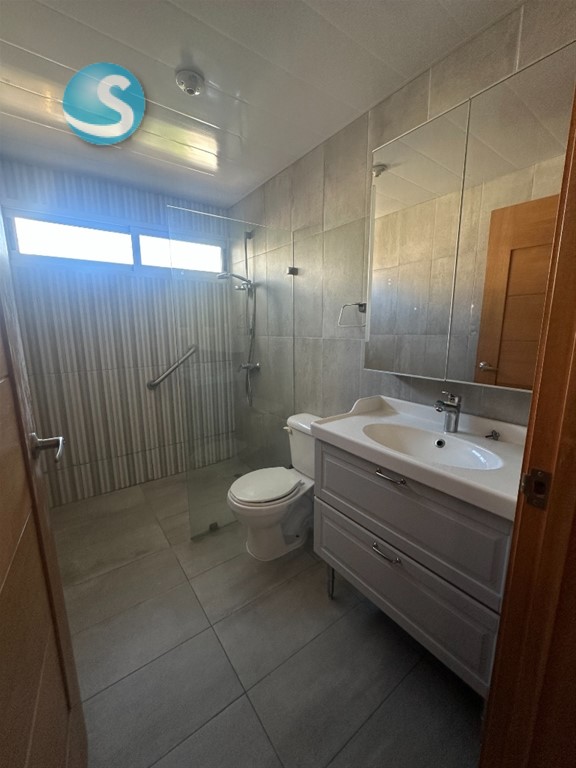 Vendo apartamento en Serrallés, en torre familiar: Detalles del apartamento: -118.33 m2 netos -143.33 brutos -Sala -Comedor -Cocina integrada -Balcón -Cuarto de servicio + baño -Área de lavado -2 habitaciones + 2.5 baños -2 parqueos techados Detalles de la torre: -Lobby climatizado -Consejería -Doorman 24/7 -1 ascensor -Amenidades: area social con Terraza techada y destechada.