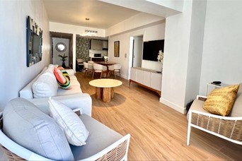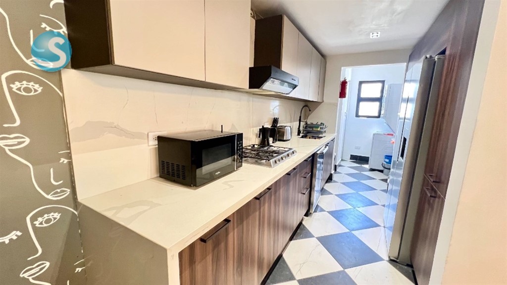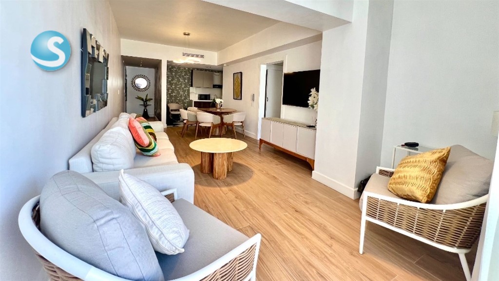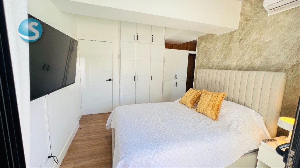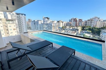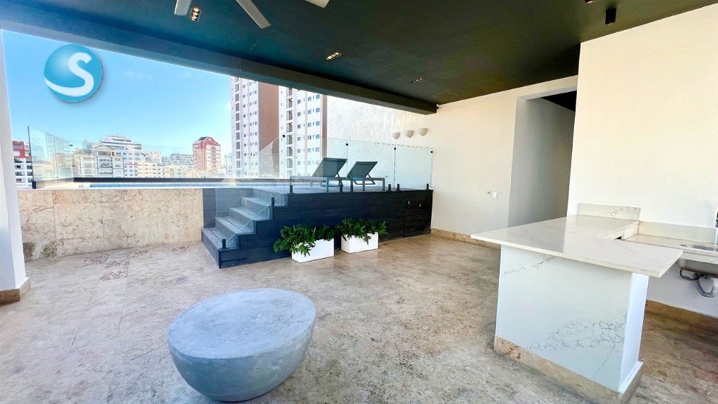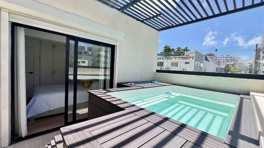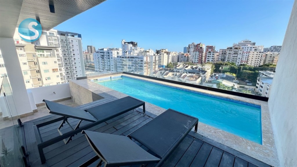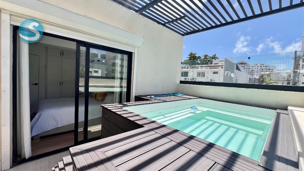 En Serrallés, Santo Domingo – Apartamento de 2 habitaciones con Terraza Privada y Jacuzzi en venta Ubicado en Serrallés, una de las zonas más exclusivas y céntricas de Santo Domingo, este apartamento ofrece privacidad, confort y una excelente ubicación. Totalmente amueblado y listo para habitar, cuenta con 121 m de construcción bien distribuidos y una amplia terraza privada de 55 m con jacuzzi, ideal para el descanso o el entretenimiento. Dispone de áreas sociales modernas, sistemas de seguridad y una gestión eficiente que garantizan tranquilidad. Una propiedad funcional, elegante y con alto potencial de valorización. Áreas sociales y amenidades: Piscina en rooftop con vistas panorámicas Área de BBQ Terraza común Bar lounge Salón de juegos Lobby climatizado Sistema de seguridad CCTV Sistema contra incendios Intercomunicador con video Portón eléctrico Pozo tubular Gas común 2 plantas eléctricas 2 bombas de agua Administración profesional Características de la propiedad: 121 m de construcción Terraza privada de 55 m con jacuzzi 2 habitaciones con closets en cedro y baños completos Cocina moderna totalmente equipada con encimeras de cuarzo Área de lavado Despensa Aires acondicionados inverter en todas las áreas 1 parqueo techado Terminaciones: Pisos de porcelanato Puertas en roble Ventanas antirruido Techos decorados con detalles contemporáneos Una propiedad concebida para quienes buscan vivir con distinción en Serrallés, integrando ubicación, diseño y confort en una sola inversión. ID 3357