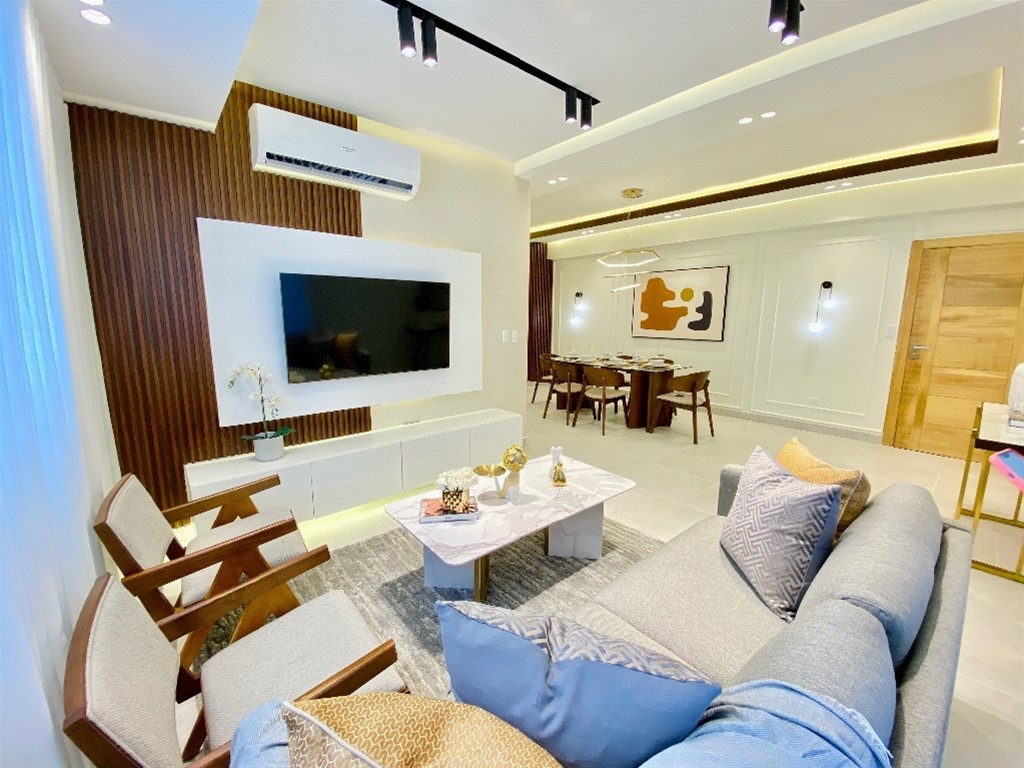 ENCANTADOR APARTAMENTO EN LA ESPERILLA Moderna Torre con excelente ubicación, con rápido acceso a las avenidas principales. TOTALMENTE AMUEBLADO US$300,000 ALQUILER AMUEBLADO US$2,500 - 119.12 metros neto - 2 habitaciones - 2.5 baños - Sala - Comedor - Balcón - Cocina - Cuarto servicio - Área de lavado - 2 parqueos - Locker Área social en el último nivel Dos (02) Jacuzzis Gimnasio equipado  Área Infantil Salón para eventos Terraza  * Fino Lobby amueblado y climatizado * 2 Ascensores de última tecnología * Planta eléctrica full * Calentadores de gas * Gas común