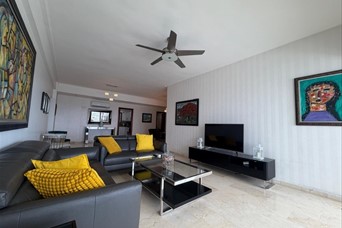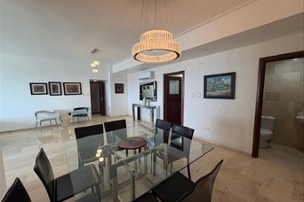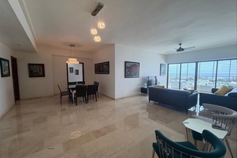 Piso 8, Espectacular Vista al Mar, Apartamento en Alquiler Amueblado y/o Venta Amueblado o Vacio, 3 habitaciones. - Terraza balcón desde la habitación principal hasta la sala - Sala - Comedor - 3 habitaciones con sus baños - Baño visita - Cocina, - Area de Lavado - Cuarto de servicio con su baño - Locker grande en el primer piso - 202 mts2 netos - 4 parqueos La Torre cuenta con las siguientes amenidades: - Recepción de Lujo - 3 ascensores - 12 parqueos de visita - Camara de seguridad - Planta Full - Gas común - Area de gazebo con su terraza grande para actividades - Area de juegos - Ducto de basura - Guardian de Seguridad Nota: - La Torre no acepta Airbnb Precio Alquiler Amueblado: US$2,000 Precio Venta Amueblado: US$430,000 Precio Venta Vacio: US$420,000