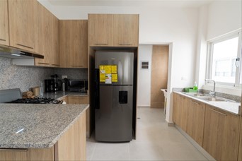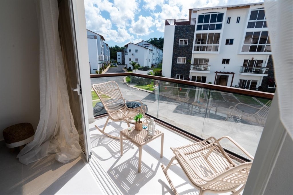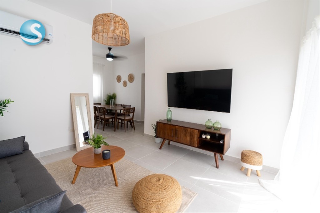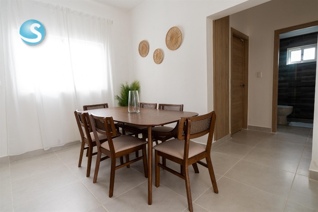 Coqueto apartamento amueblado nuevo a estrenar en venta y alquiler en Las Terrenas a tan solo 5 minutos a pie de la Playa Las Terrenas y Punta Popy. 2do piso sin ascensor, 82m2, 2 habitaciones, 2 baños, sala, comedor, cocina, area de lavado, balcon, 1 parqueo. Area social con: Amplia piscina, terraza techada climatizada. Facilidades: Seguridad, planta full, gas comun con medidor, intercom, porton electrico, conserjes, oficina de administraccion. Para coordinar una visita, puede ponerse en contacto con: Angélica Sierra? Abogada? Teléfono: 849-817-6280