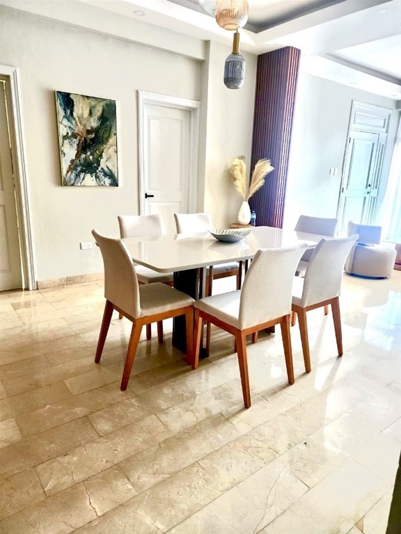 ENSANCHE PIANTINI EN LA EXCLUSIVA ZONA DE PIANTINI Segundo nivel con terraza privada 219.38 mt2 180.0 mt2 + 30 de terraza Descripción: Sala Comedor Cocina Terraza 3 Habitaciones 2 con W/C 3.5 Baños Habitación de servicio Área de lavado 2 Parqueos techados y paralelos Intercom Locker AMENIDADES Portón eléctrico Ascensor Área social con Jacuzzy y gazebo Planta full Gas común Pozo Cisterna Luz 24/7 Cámaras de seguridad Lobby Conserje Se renta amueblado US$2,000 Información Johanna Guzmán
