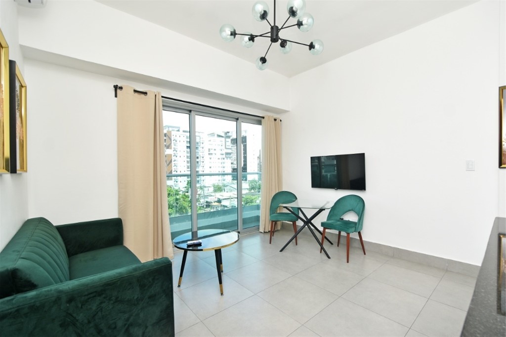 Venta y alquiler en exclusiva torre ubicada en Serralles Piso 5 55 mts 1 habitaciones 1.5 baños Sala Comedor Desayunador Cocina Balcón Área de lavado 1 parqueo Amenidades y características de la torre Portón eléctrico 2 ascensores Luz 24 hrs Cámaras de seguridad Planta full Gimnasio Piscina Lobby climatizado Terraza común Gas común Precio de venta US$190,000 Precio de alquiler US$1,200