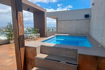 Apartamento en venta en el sector de Serralles: 80 mts 1 habitación 1.5 baño Area de lavado Baño completo de servicio Balcón Línea blanca completa Sala/comedor Cocina 2 parqueos techados paralelos Walk in closet Amenidades: 2 terrazas 2 jacuzzi Salón multiusos 2 BBQ Gimnasio Lobby climatizado y amueblado Seguridad 24 horas Planta eléctrica full Portón eléctrico
