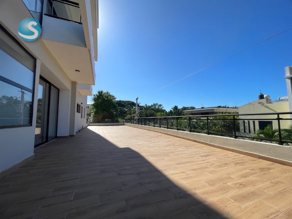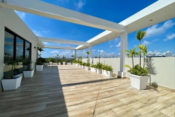 Apartamento para estrenar con amplia terraza de 75 metros ubicado en Zona Universitaria PISO 2 Terraza 75 metros + 95 metros de apartamento 2 habitaciones 2.5 baños Sala Comedor Cocina con desayunador Amplia terraza Área de lavado Habitación de servicio con baño 2 parqueos Características y amenidades de la torre Lobby climatizado y amueblado. Gimnasio climatizado y equipado Salón multiuso con bar Área de juegos para niños equipado Terraza destechada con BBQ Un (01) ascensor Generador eléctrico Sistema de seguridad (circuito cerrado) Precio de venta US$255,000