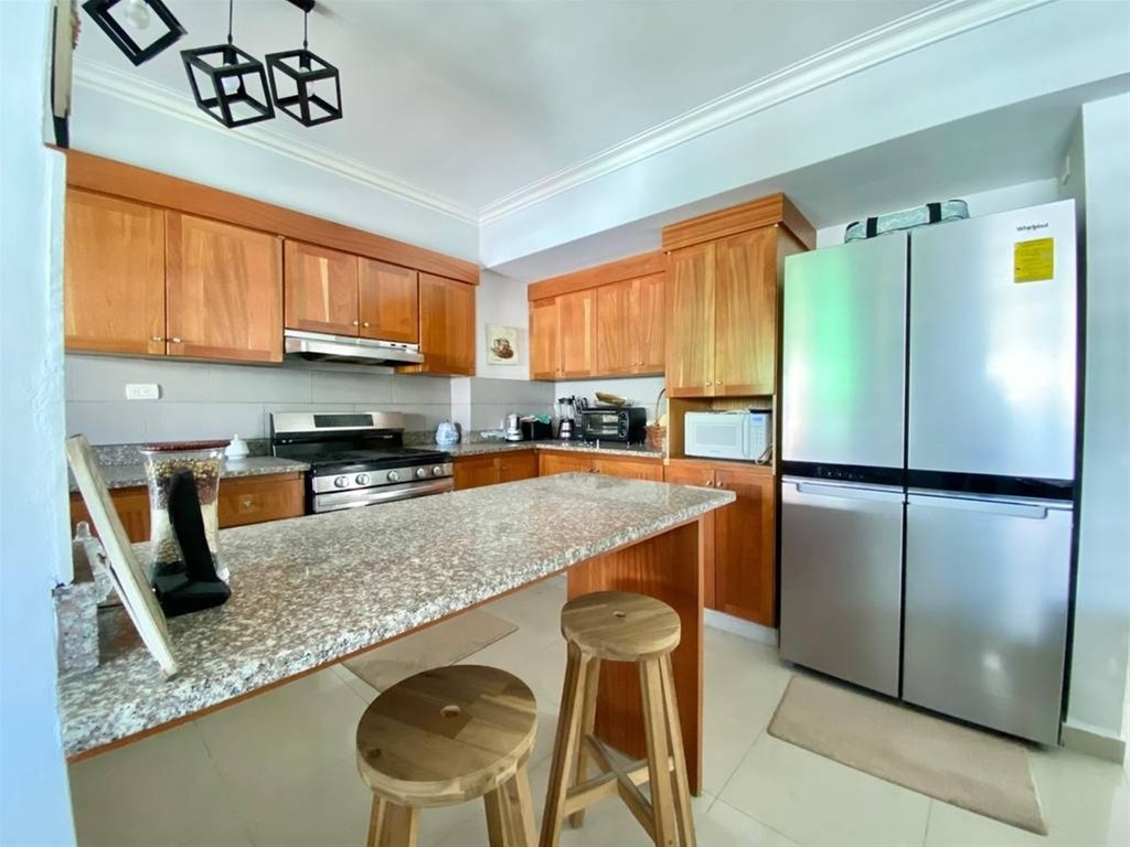 Características del apartamento 125 metros netos 3 Habitaciones (principal con walking closet) 2 baños Baño para visitas Balcón Amplia sala Comedor Cocina abierta con desayunador Cuarto de servicio Área de lavado Locker 2 parqueos paralelos Terraza comun Porton electrico Gas comun