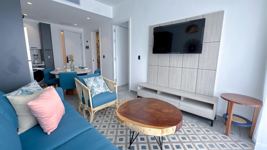 El apartamento se entregara con estufa , extractor ,nevera , horno empotrado lavadora - secadora y aire acondicionado. El proyecto incluye Piscinas , Campo de Golf , Playa Artificial , Driving Range , Lago para Pescar , Gymnasio , Areas Verdes. Ubicado a 10 minutos del Aeropuerto , 3 minutos de Downtown Punta Cana , Coco Bongo y San Juan Shopping Center, a 9 minutos de Blue Mall , En las fotos se aprecia que ya los edificios están levantados , actualmente en fase de terminación. 66 METROS US$145,000 DOLARES , es una oportunidad ya que el precio es de 186,000 . Tiene Confotur , Tendra Condo hotel EPC.