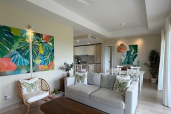 Exclusivo Penthouse y amplia terraza con vista al Campo de Golf en Vista Cana Ubicado dentro de la prestigiosa comunidad planificada de Vista Cana, este exclusivo penthouse en Ventura Golf Estate ofrece una combinación ideal de amplitud, privacidad y entorno natural, con impresionantes vistas al campo de golf. Con una superficie total de 225.80 m², la propiedad ha sido diseñada para brindar confort y funcionalidad, destacándose por sus espacios bien distribuidos, excelente iluminación natural y áreas exteriores que invitan al disfrute. Características del Inmueble • 225.80 m² de construcción • Terraza privada de 67.50 m² con baño • 2 habitaciones, incluyendo habitación principal con walking closet • 2 baños completos • Sala y comedor integrados • Cocina moderna con isla central • Amplio balcón con vista al campo de golf • Área de lavado • 2 parqueos Vista Cana Vista Cana es una comunidad residencial de alto nivel que ofrece una infraestructura moderna y una amplia variedad de servicios diseñados para elevar la calidad de vida de sus residentes: • Playa artificial privada • Centro comercial La Nube • Supermercado La Sirena • Áreas deportivas y recreativas • Senderos ecológicos para caminar y ciclismo • Lago con actividades acuáticas y pesca • Casa club y espacios sociales • Seguridad 24/7 con acceso controlado • Amplias áreas verdes y paisajismo Ubicación Estratégicamente ubicado en Punta Cana, con fácil acceso al Aeropuerto Internacional, zonas comerciales, restaurantes, centros de entretenimiento y las principales playas del destino. Precio de Venta US$303,000