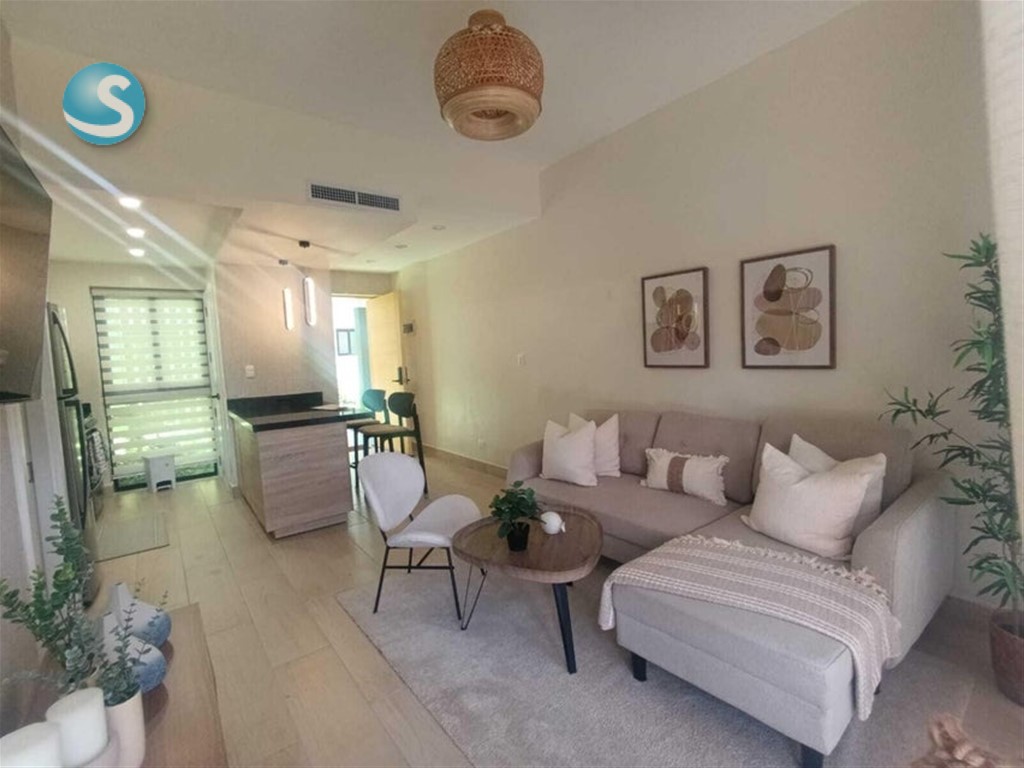 MLS #26-1431 Apartamento en alquiler/renta en Vista Cana, sala-comedor y cocina concepto integrado, amplia habitación con acceso al patio, walk in closet amplio y baño privado, baño de visitas, terraza techada, amplio patio para tomar fresco, INCLUYE mantenimiento e internet. Lobby climatizado Piscina Gym Campo de golf Casa club Restaurantes y mucho Oficina
