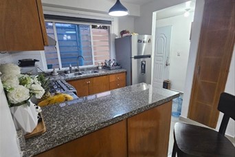 Apartamento en magnificas condiciones disponible para la venta. Cercano a colegios, farmacias, supermercados, clínicas, comercios, ubicado en Vista Hermosa. Santo Domingo Este Características: 1er piso 190 metros Sala Comedor Cocina Closet ropa blanca 3 habitaciones 2 baños 1 parqueo techado Patio Gazebo **Closet, puertas y gabinetes en cedro** Amenidades: Picuzzi Cámaras de seguridad Portón eléctrico Gas común Precio venta: RD$9,800,000 Tel. 829-255-5198