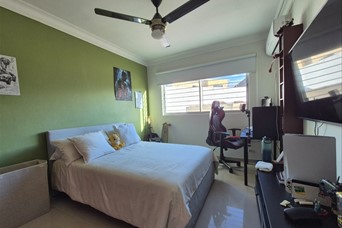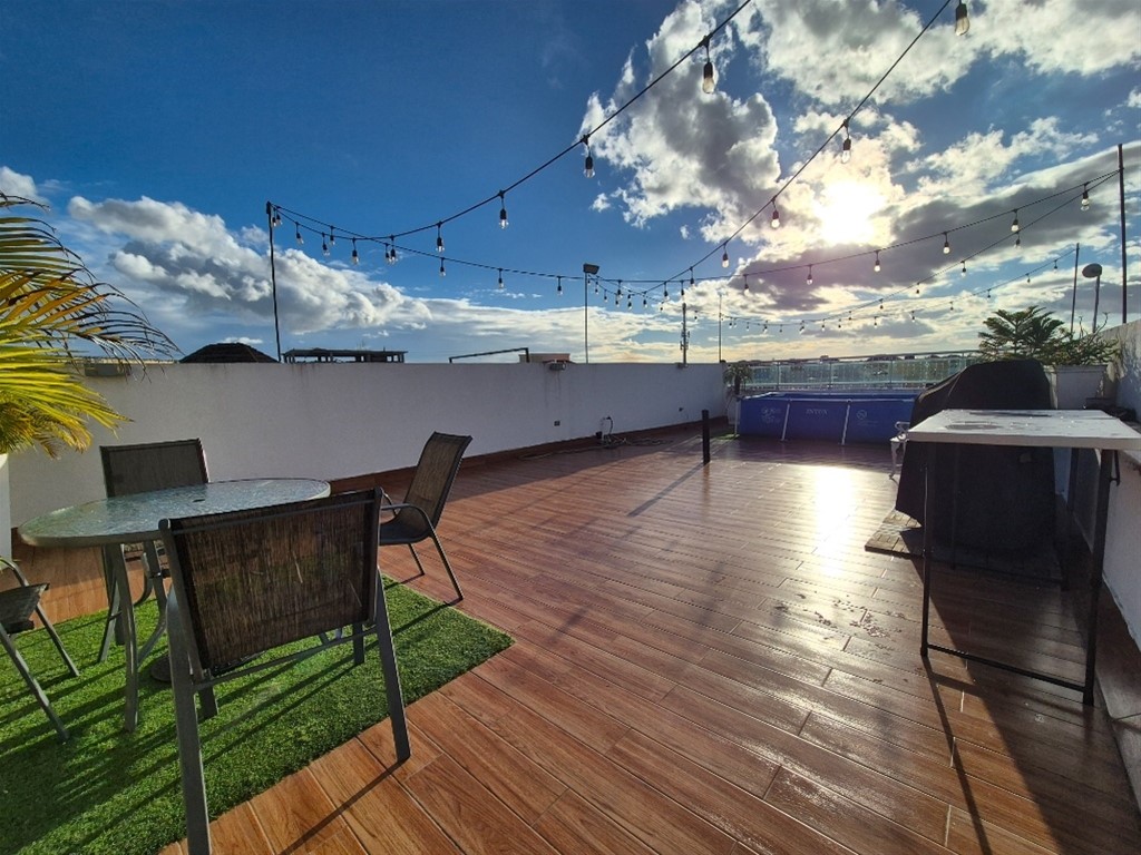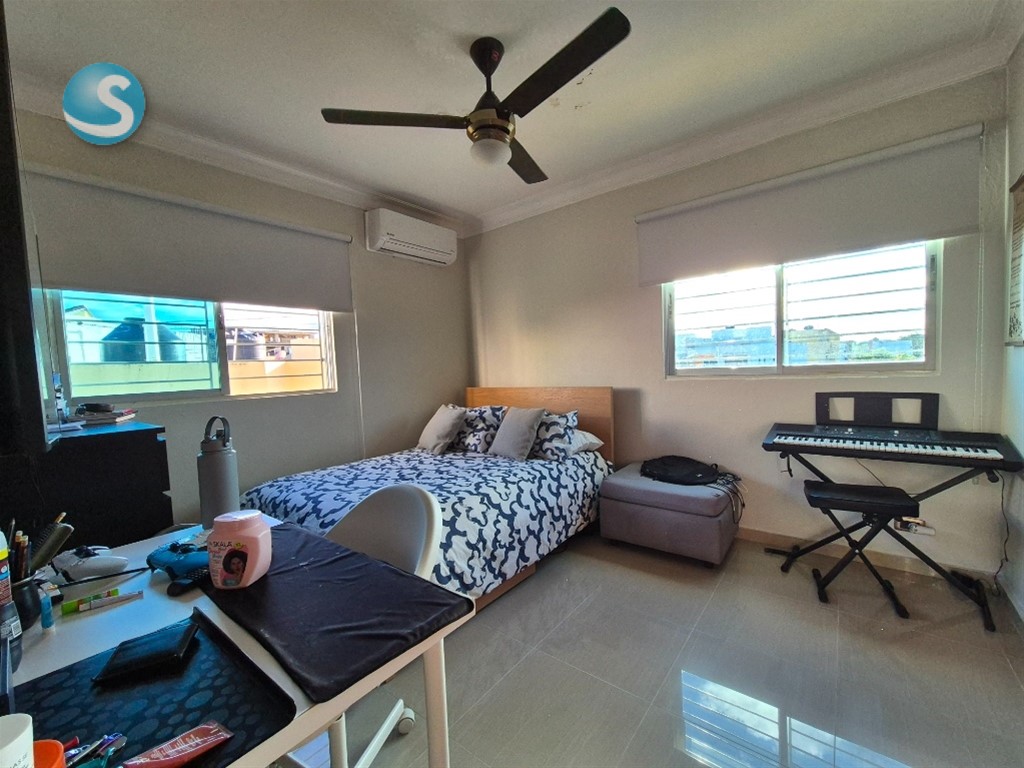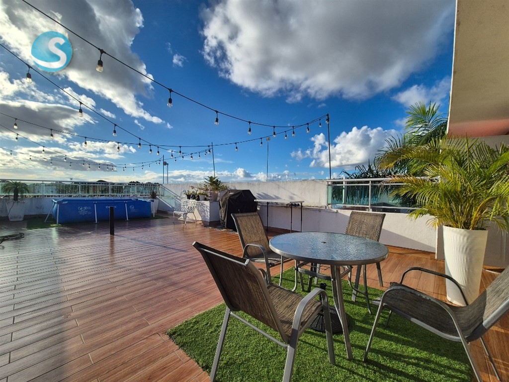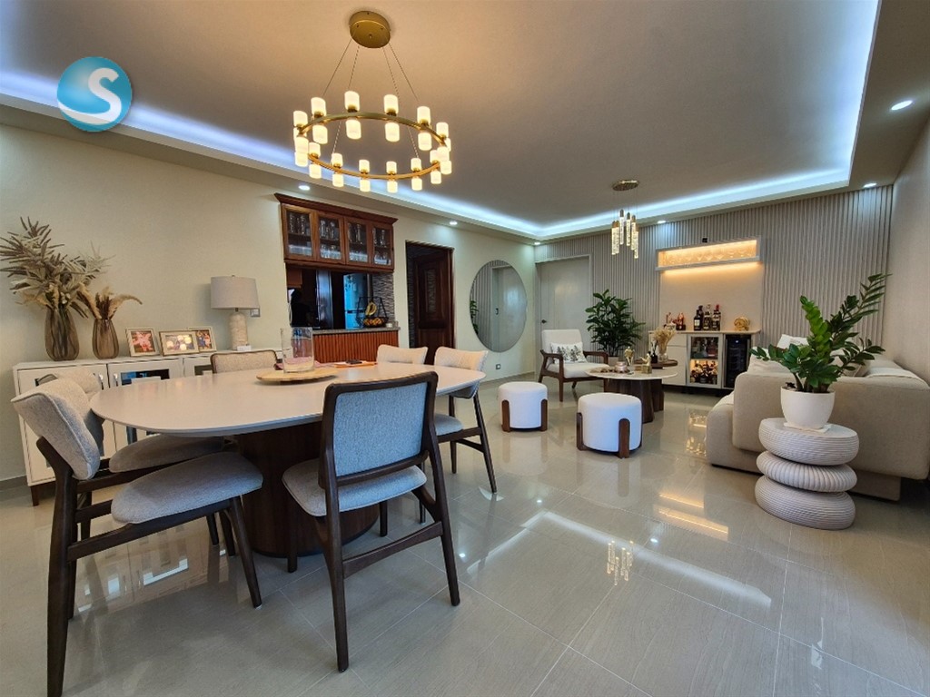 Espacioso apartamento familiar con excelente distribución, terminaciones y acabados, y una hermosa terraza privada. Ubicado en el centro de Vista Hermosa, cuenta con las siguientes características: 4to nivel 111.60 mts² de construcción Terraza privada de 89.94 mts² con medio baño 3 habitaciones Baño en habitación principal Baño común Sala y comedor Cocina con desayunador Balcón integrado Area de lavado Cuarto de servicio con baño 2 parqueos individuales Portón eléctrico Intercom Control de acceso Mantenimiento RD$2,500 Precio: RD$9,400,000 ****MAS INFORMACION*** DANIEL MELO 829-770-0815