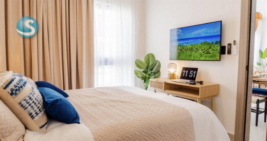 Moderno y Elegante Apartamento en Vista Cana Vive el equilibrio perfecto entre lujo, confort y naturaleza Metraje: 82.50 m² Distribución: • 2 amplias habitaciones con vestidor • 2 baños completos + baño de visitas • Sala acogedora y cocina totalmente equipada • Jacuzzi privado • Finamente amueblado • Vista directa a la piscina Amenidades exclusivas: • Playa artificial privada con arena blanca • Campo de golf • Lagos para pesca deportiva • Espacios para yoga, meditación y bienestar • Áreas de coworking para un balance perfecto entre trabajo y placer Ubicado en Vista Cana, a pocos minutos de playas, restaurantes y entretenimiento. Precio de venta: USD 259,000 #2682