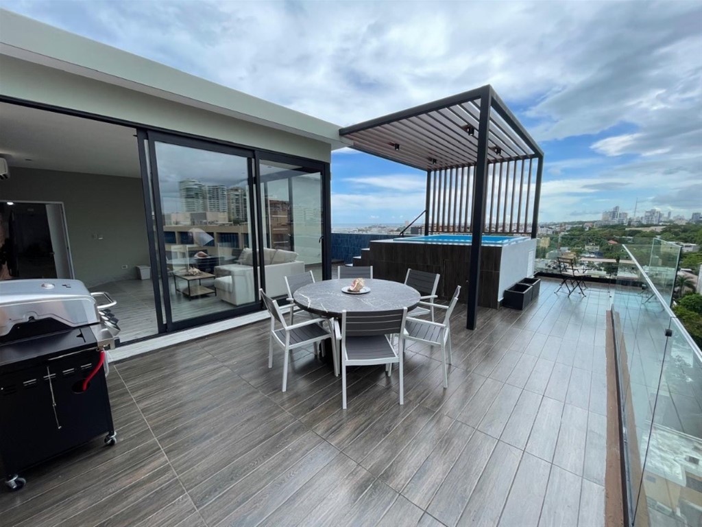 ALQUILO Apartamento AMUEBLADO Con Terraza Privada + Jacuzzi Privado En Zona Universitaria - 10mo Piso - 89Mt2 - 78Mt2 Terraza - 2 Habitaciones - 2.5 Baños - 2 Parqueos lineales Techados - Sala/Comedor - Cocina - Área de lavado - Balcón - Terraza privada - Jacuzzi Privado - Lobby - 2 Ascensores - Gas común - GYM - Seguridad 24/7 PRECIO: US$1,150 Mantenimiento Incluido. Yonaida Espinal. Contact me: 829-347-4909 ESCRIBIR AL WS.