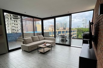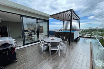 ALQUILO Apartamento AMUEBLADO Con Terraza Privada + Jacuzzi Privado En Zona Universitaria - 10mo Piso - 89Mt2 - 78Mt2 Terraza - 2 Habitaciones - 2.5 Baños - 2 Parqueos lineales Techados - Sala/Comedor - Cocina - Área de lavado - Balcón - Terraza privada - Jacuzzi Privado - Lobby - 2 Ascensores - Gas común - GYM - Seguridad 24/7 PRECIO: US$1,150 Mantenimiento Incluido.