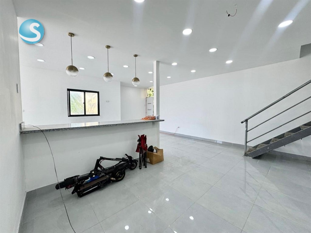 Casa en venta ubicada en Mar Azul- 3 Niveles 370 mts Características del apartamento: 4 habitaciones 5 baños Sala Comedor Cocina Patio Family room Estudio Terraza Recibidor 3 parqueos Características del residencial Portón eléctrico Cámara de seguridad Salón multiuso Cisterna Cerca Eléctrica Precio de venta US$285,000 INFORMACION Maria Canchica 849-273-5805 809-991-5805