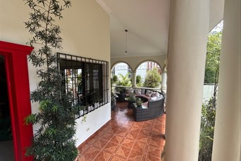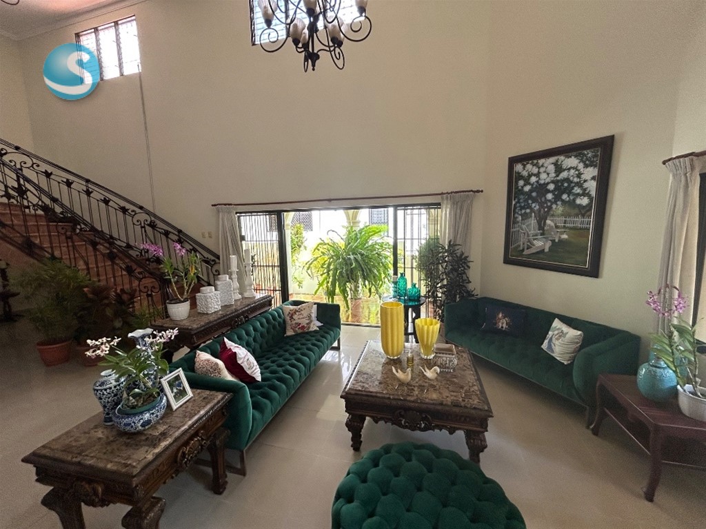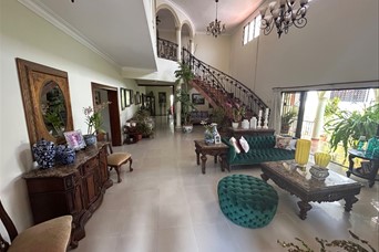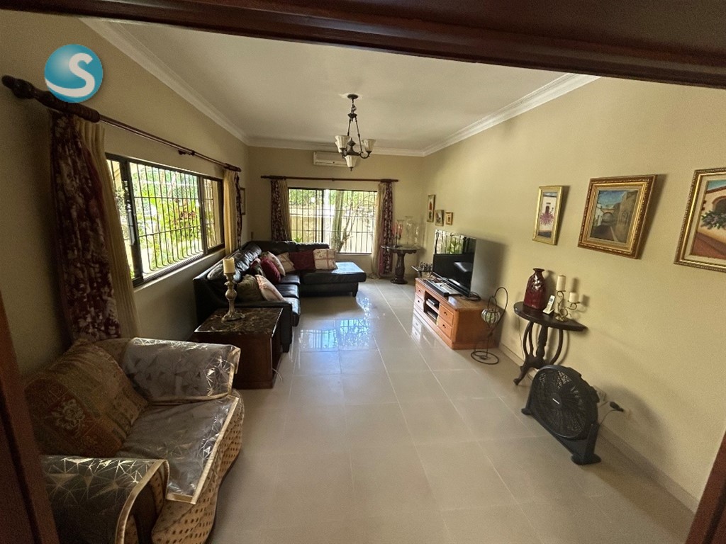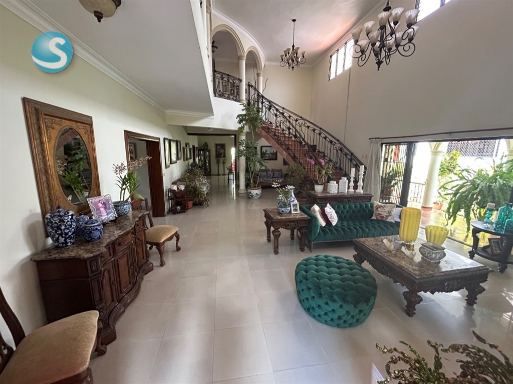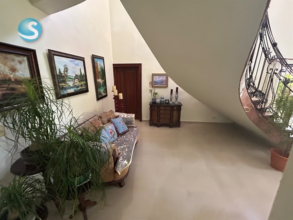 Alameda Este, Calle Junco #2,frente al parque,al pulmon verde del residencial 800 metros de Solar 715 metros de construcción 2 Pisos Galeria Lateral que bordea la sala en forma de L Marquesina de 4 vehiculos Sala de Doble Altura Family Room cerrado 1 baño de visita grande Comedor Grande con cascada en los ventanales Cocina Amplia Area de Lavado Cuarto de Servicio Terraza con patio español Patio con piscina de Lona Escalera en marmol de media espiral Segundo piso con balcon con arcos coloniales con vista a la sala 4 habitaciones(2 con walk in closets y balcones) Salon Multiuso Sisterna Tinaco Seguridad 24 horas en el residencial con monitoreo de camara Verjas Altas alrededor de toda la casa Lamparas de la casa incluidas (todas) Aire del family room incluido Le dejan todo el jardin de orquídeas Viene con la mesa incluida(Tronco de Caoba) Para mas información: 829-934-1312