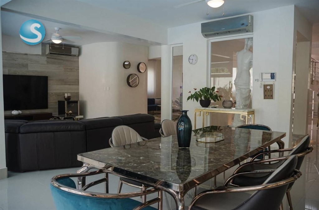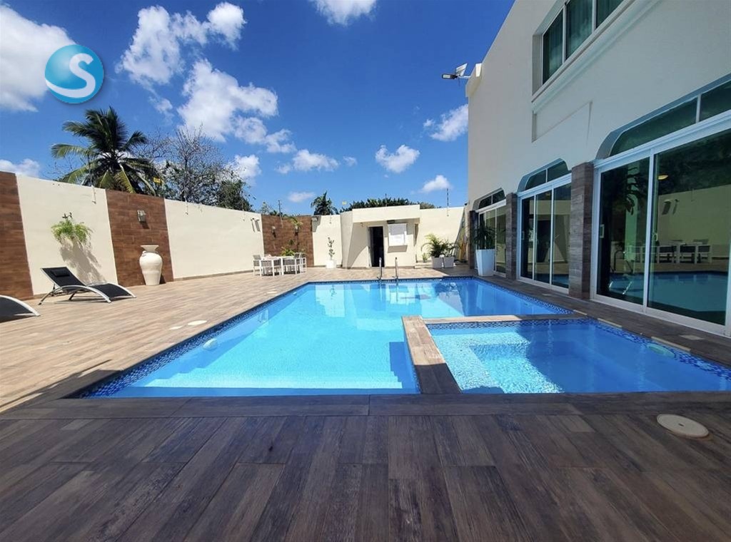 Código: 3035 Casa de Lujo en Venta o Alquiler Santo Domingo Oeste | Piscina, Jacuzzi, 4 Habitaciones, Amueblada, Amplio Terreno Exclusiva residencia ubicada en Santo Domingo Oeste, diseñada para ofrecer amplitud, privacidad y un estilo de vida confortable. Esta impresionante casa de dos niveles cuenta con generosos espacios interiores y una completa área social, ideal para el disfrute familiar y para recibir invitados. La propiedad destaca por su diseño funcional, múltiples áreas sociales y elegantes espacios exteriores alrededor de la piscina, creando un ambiente perfecto para relajarse o compartir momentos especiales. Metraje total: 785.18 m² Distribución interior • 4 dormitorios, cada uno con su baño privado • Habitación principal con vestidor y estar privado • Recibidor • Sala principal • Sala secundaria • Tercera sala de estar • Comedor principal • Comedor de diario • Cocina caliente • Despensa • Oficina privada • Estar familiar • Área de lavado • Cuarto de servicio con baño Área exterior y social • Piscina • Jacuzzi • Terraza • Amplios espacios alrededor del área de piscina • Estatua decorativa en yeso Comodidades adicionales • Marquesina doble • Espacio para hasta 4 parqueos La propiedad se vende y se alquila completamente amueblada, lista para habitar. Precio de venta: US$790,000 Precio de alquiler: US$3,500 mensuales Una propiedad ideal para quienes buscan amplitud, elegancia y privacidad en una zona residencial de Santo Domingo Oeste. Contáctame para más información o para coordinar una visita.