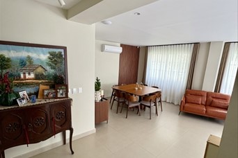 Se vende hermosa casa de tres niveles en un residencial cerrado dentro de una calle con acceso controlado por garita de seguridad. Cuenta con tres habitaciones cada una con walk-in closet y baño. Habitacion principal con dobles walk-in closets y sauna integrado en la bañera. Un baño de visita en cada nivel, cocina fria, cocina caliente, cuarto de choferes, cuarto de servicio, locker independiente, sala, comedor, estudio cerrado, family room, hermoso patio, dos parqueos techados y dos destechados. Planta electrica comun, pozo comun, paneles solares.