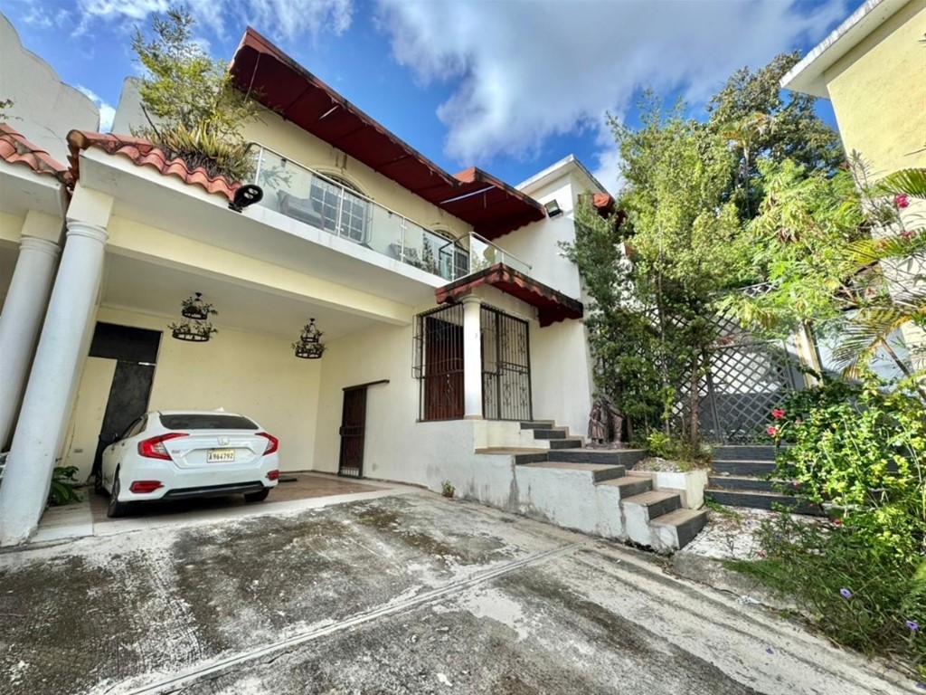 Casa en Venta ALTOS DE ARROYO HONDO II USD 325,000.00 CARACTERÍSTICAS DE LA CASA: - 302 m2 de solar - ?246.88 m2 de construcción - ?2 niveles - ?Marquesina para 4 vehículos (2 techados) - ?Cisterna - ?Residencial cerrado - ?Portón eléctrico PRIMER NIVEL: - Patio con jacuzzi - ?Terraza techada - 1 baño - ?Estar - ?Sala - ?Comedor - ?Cocna fría con desayunador - ?Cocina caliente - ?Habitación de servicio - ?Área de lavado SEGUNDO NIVEL: - 3 habitaciones (principal con espacio para sala) - ?2 vestidores + 2 clósets - ?3 baños - ?2 balcones - ?Estudio (puede ser 4ta habitación) WM BIENVENIDA RUBEN 829 719 5197