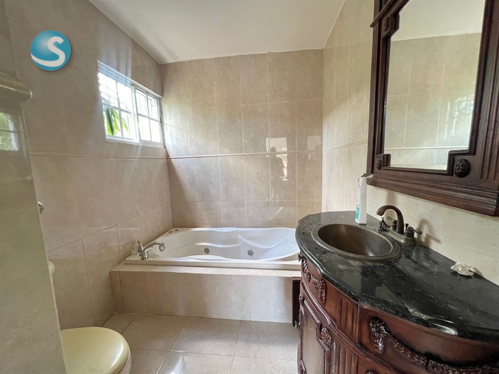 Hermosa Casa en Altos de Arroyo Hondo III Impresionante residencia ubicada en una de las zonas más exclusivas de la ciudad, Altos de Arroyo Hondo III, ideal para quienes buscan confort, privacidad y elegancia. Terreno: 381.43 m² Construcción: 339.92 m² Distribución y características principales: 5 amplias habitaciones, cada una con su baño privado Sala principal, antesala y sala familiar Área de comedor Terraza perfecta para reuniones y relajación Baño de visitas Escalera de emergencia con acceso directo al parqueo Jacuzzi Áreas de servicio y adicionales: Cuarto de servicio Área de lavado Marquesina con capacidad para 4 vehículos Cisterna y tinaco Detalles de terminación: Portón eléctrico Puertas en caoba Pisos en mármol Una propiedad que combina comodidad, seguridad y acabados de primera, convirtiéndose en el hogar ideal para su familia.