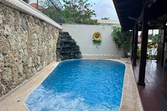 Vendo hermosa casa en Altos de Arroyo Hondo III. A minutos del Jardín Botánico, de la Avenida Luperon y la Avenida República de Colombia 587 metros cuadrados de construcción Dos niveles Verja perimetral Jardin frontal Sótano con apartamento estudio y entrada independiente Marquesina para 7 vehículos Lobby Medio baño visitas Sala principal Sala de estar Terraza techada Piscina Área de BBQ 2 baños para piscina Cocina fría Cocina caliente Family Room Área de comedor Área de comedor Segundo nivel Magestuosa escalera al segundo nivel 5 habitaciones Cada habitación con su baño Habitación principal con jacuzzi y vestidor