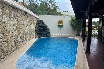 Casa en venta en Altos de Arroyo Hondo III Sótano (apartamento completo) Sala, habitación, cocina pequeña y baño Marquesina techada para 4 vehículos y parqueo abierto para 3 vehículos Cuarto de servicio con baño Área de lavado Patio Escalera de acceso a las habitaciones con terminación en mármol SEGUNDO NIVEL Recibidor Sala Estar familiar Comedor Cocina Fría y caliente Baño para visitas Terraza techada con pared con fondo de piedras Patio 1 Baño completo TERCER NIVEL 4 habitaciones, principal con walk in closet 3 baños Balcón Piscina con terraza en madera y un baño completo Área de BBQ Precio de venta USD$520,000
