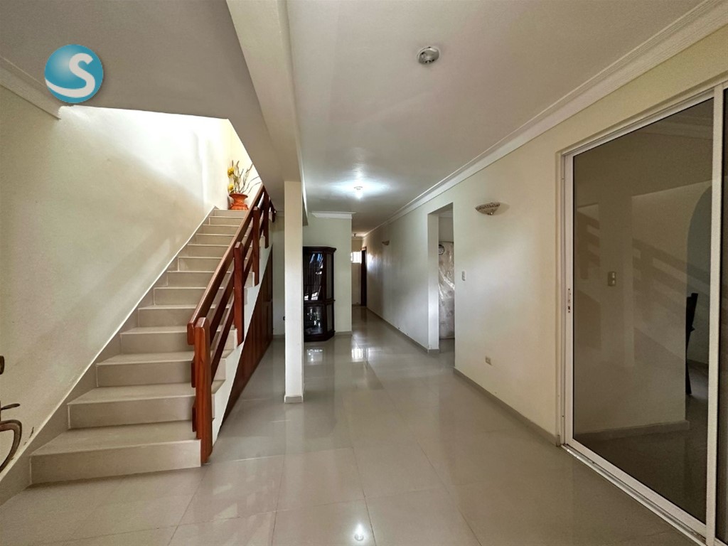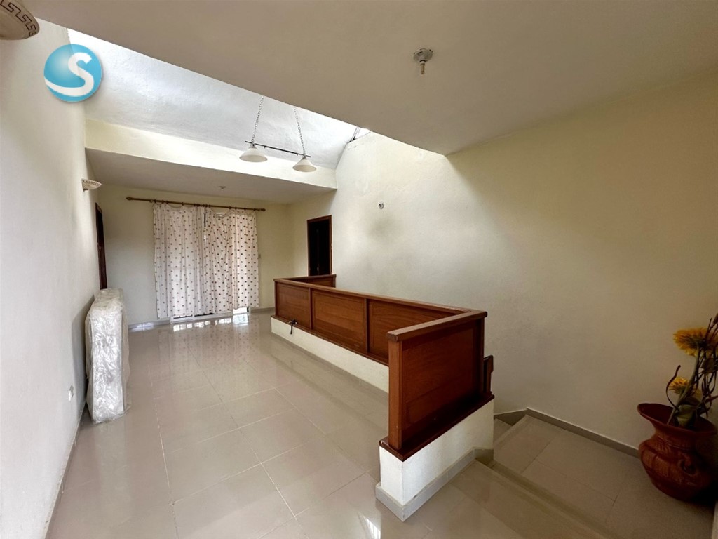 Características: • Terreno: 305 m² • Construcción: 440 m² Primer Nivel: • Marquesina para 2 vehículos • Sala, comedor, galería y medio baño • Habitación con baño privado • Cocina con encimeras en granite • Area adicional que pudiera funcionar como 4ta habitación • Terraza techada, área de lavado, patio y jardín Segundo Nivel: • Estar familiar • Habitación principal con walk-in closet doble y baño doble • Habitación secundaria con baño privado • Balcón delantero y terraza trasera en L Terminaciones: Pisos porcelanato y madera de caoba. Título libre de cargas y gravamenes Precio: RD$12,500,000