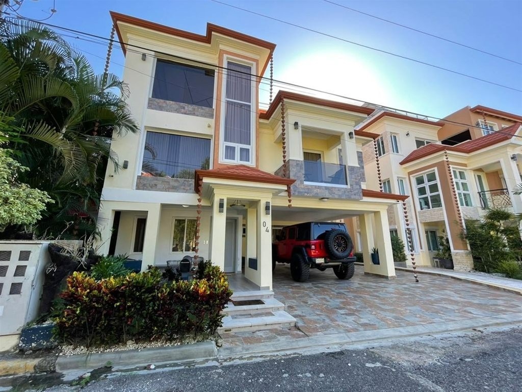 VIVIENDA FAMILIAR, EN RESIDENCIAL CERRADO CON SEGURIDAD 24/7, AUTOPISTA DE SAN ISIDRO. Acogedora vivienda familiar de 3 niveles, en el exclusivo Residencial El Ébano, Autopista de San Isidro, Santo Domingo Este. La vivienda tiene unos 230 metros de solar y 330 metros aproximados de construccion, con las siguientes caracteristicas: Nivel 1: • Marquesina para dos vehículos • Galería • Hermoso jardín • Pasillos laterales y trasero • Sala • Comedor • Amplia y moderna cocina con isla • 1 baño completo • Habitación de huésped. Piso 2: • Amplio estar familiar • Enorme habitación matrimonial con balcón/terraza, baño moderno y espectacular w. closets. • 2 habitaciones secundarias finamente decoradas, con hermosos closets laqueados en blanco. Piso 3: •Terraza destechada de unos 25 metros aproximados. • Amplio estar familiar techado de unos 40 metros aproximados. • Área techada, ideal para usos múltiples de unos 60 metros aproximados. • Una habitación con su closets. • 1 baño completo. • Escalera interna hacia la azotea. Precio: US$475,000.00 CODIGO.6680