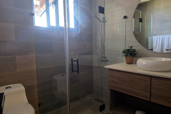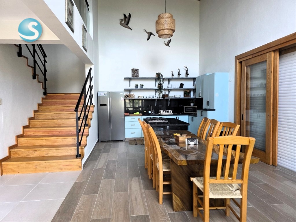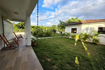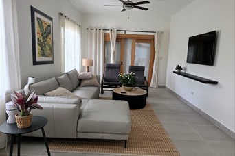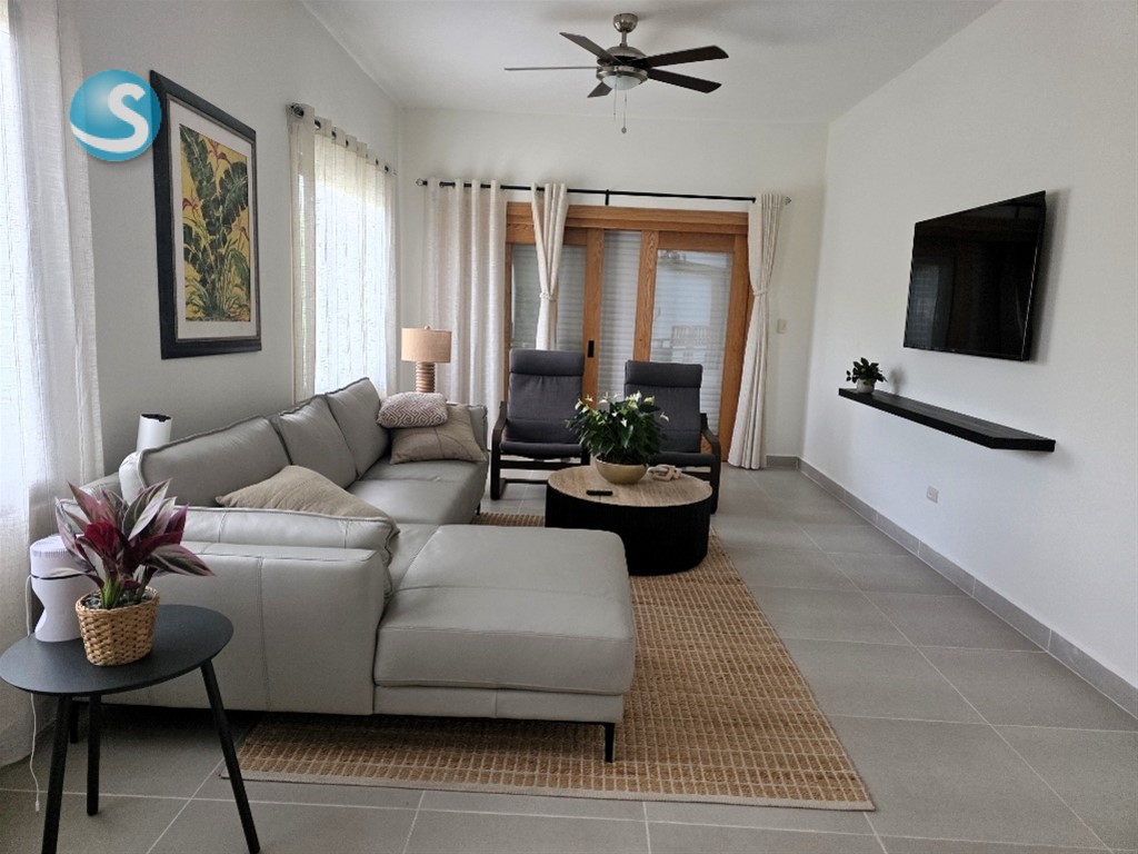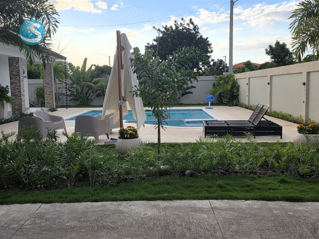 Hermosa Villa recién construida dentro del proyecto Eco turísticas Campomar rodeada del sabroso mango banilejo, aguacates y plátanos El proyecto está ubicada frente a las costas del mar caribe, entre el pueblo de Baní y de Matanzas en la provincia de Peravia. A tan solo 10 minutos de las Dunas de Bani, Las Salinas y la Playa Punta Salinas Es una villa nueva a entrenar, completamente amuebla y equipada En1er Nivel: • Cocina con isleta y mesa en madera de samán como desayunador • Sala familiar • 1 habitación para invitados con su baño, A/A y terraza • Baño de visita • Cuarto de lavado • Shutter en ventanas En 2do nivel: • Recibidor con balcón • 2 habitaciones con sus baños, A/A, la principal con balcón • Closet ropa blanca Área social: • Piscina con jacuzzi • Gazebo con su baño, mesa en madera de samán, refrigerador • Zona de BBQ • Inscripción en Casa Club del complejo, la cual tiene piscina, área de recreación restáurate y una vista espectacular al mar Generalidades: • Parqueo para 6 vehículos • Verja perimetral iluminada • Pisos en porcelanato • Madera de Robre y Pino tratado • Cisterna de 5 mil galones y tinaco en el techo • Inversor de 3.5 kW más 8 baterías • Cámara de seguridad y alarma de pánico • Casa para personal de servicio con su dormitorio, baño, sala y cocina